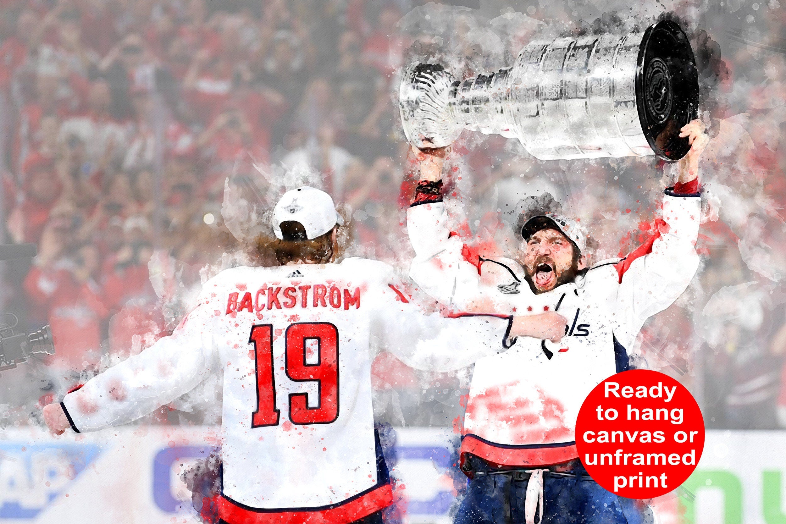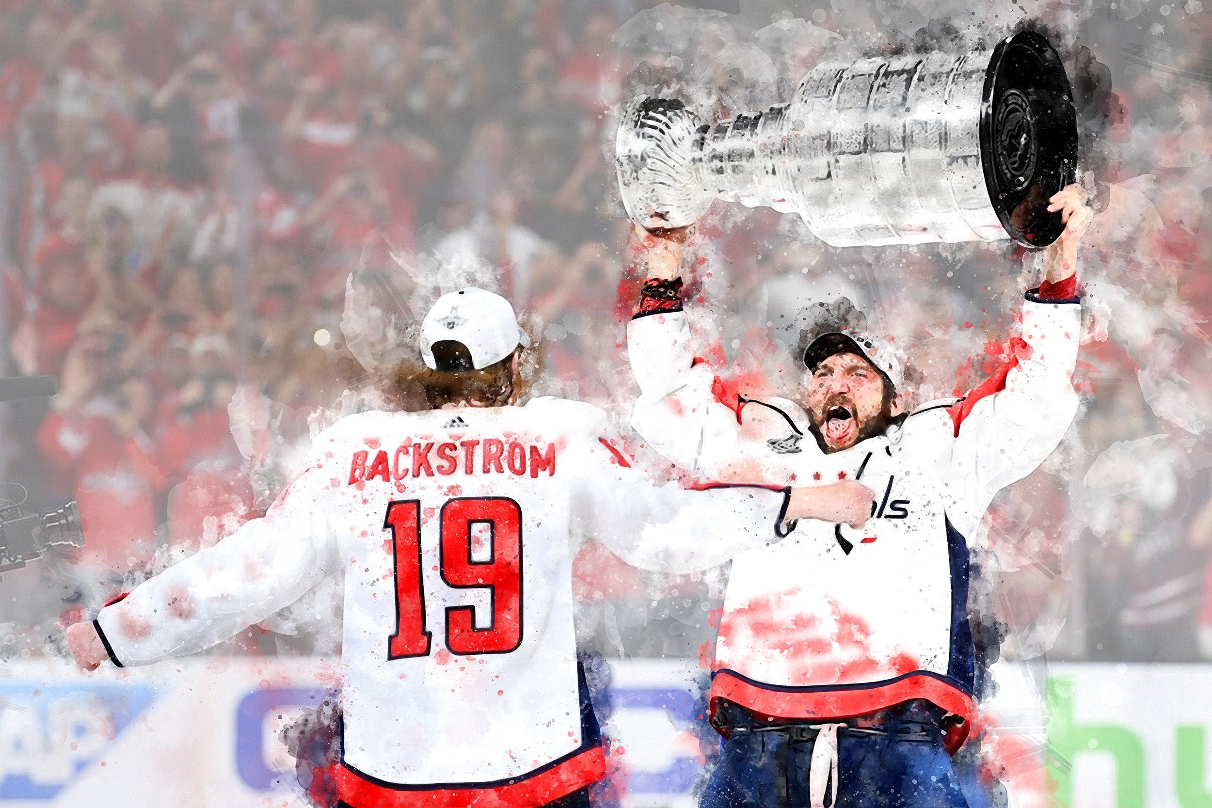 Alex Ovechkin Nick Backstom watercolor, Washington Capital Stanley Cup, Capitals Stanley Cup winner Canvas watercolor, Alex Ovechkin Capital