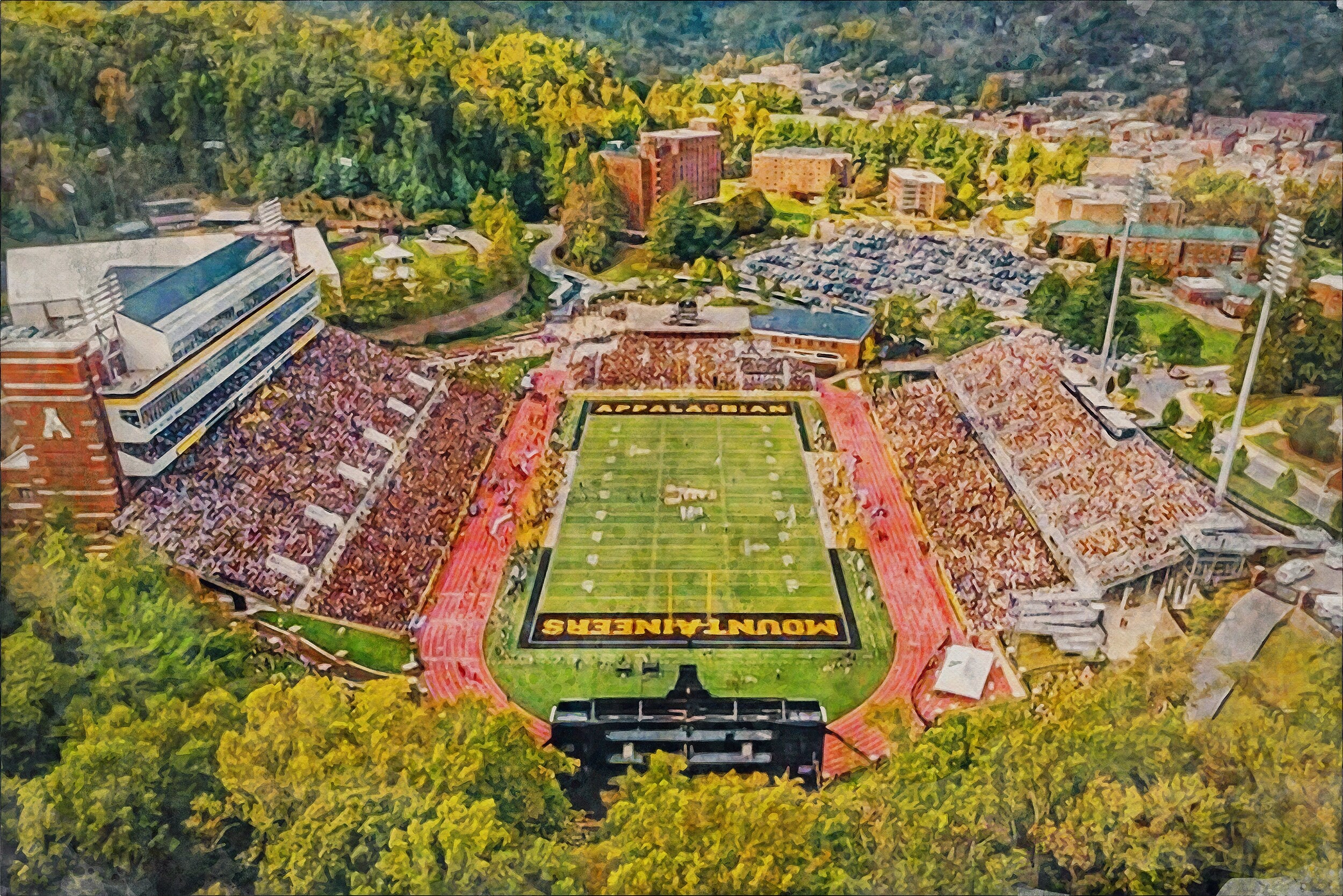 Beautiful Digital watercolor of Kid Brewer Stadium in Boone North Carolina