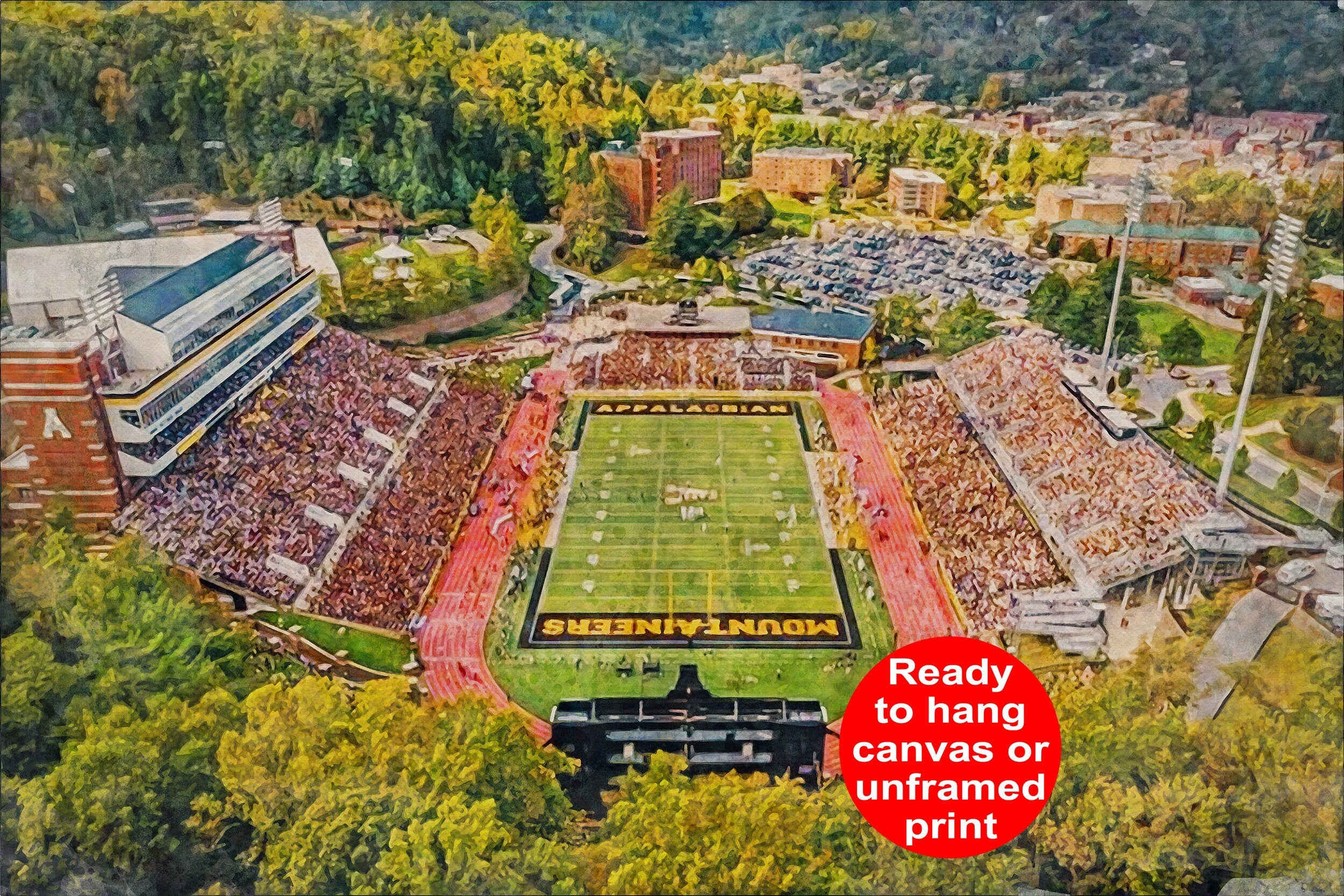 This Kidd Brewer Stadium in Boone North Carolina is the perfect decor for any home. This print of my digitally custom created wall art will last a lifetime. Kidd Brewer Stadium at Appalachian State University Poster