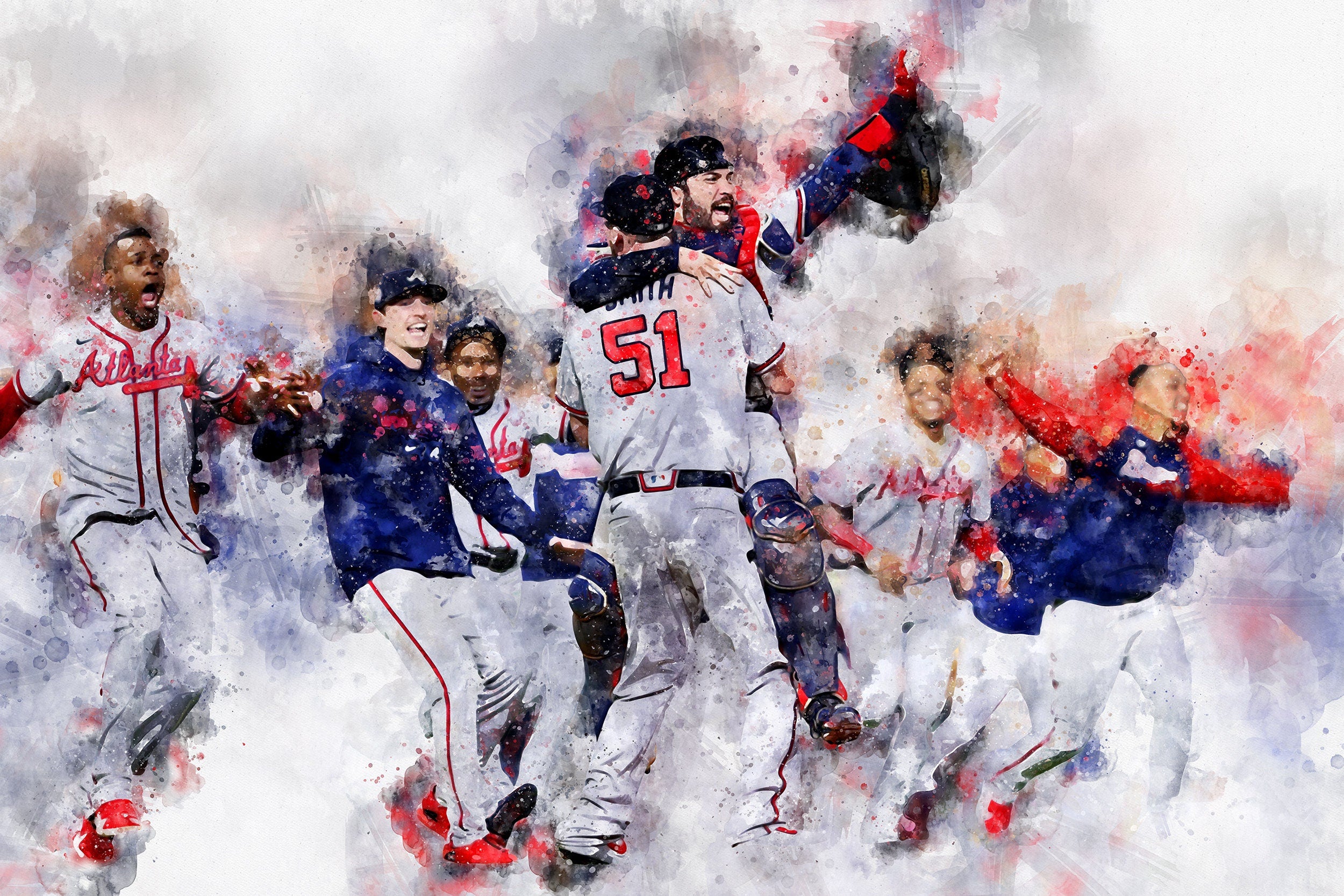 Beautiful watercolor of Atlanta Braves World Series celebration.