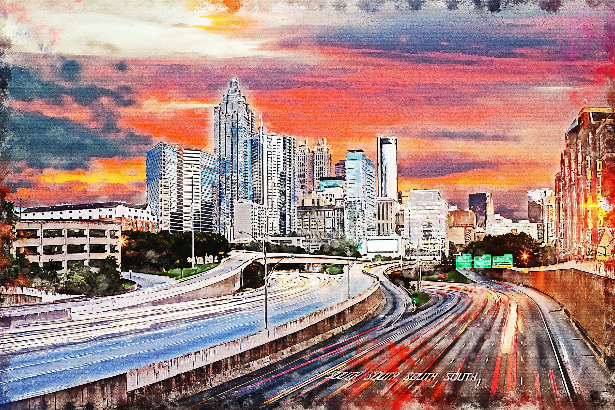 A great watercolor print of Atlanta. Atlanta watercolor. Comes on framed canvas or a digital download or if you prefer, a digital download and you can print it your self. (no physical product sent)