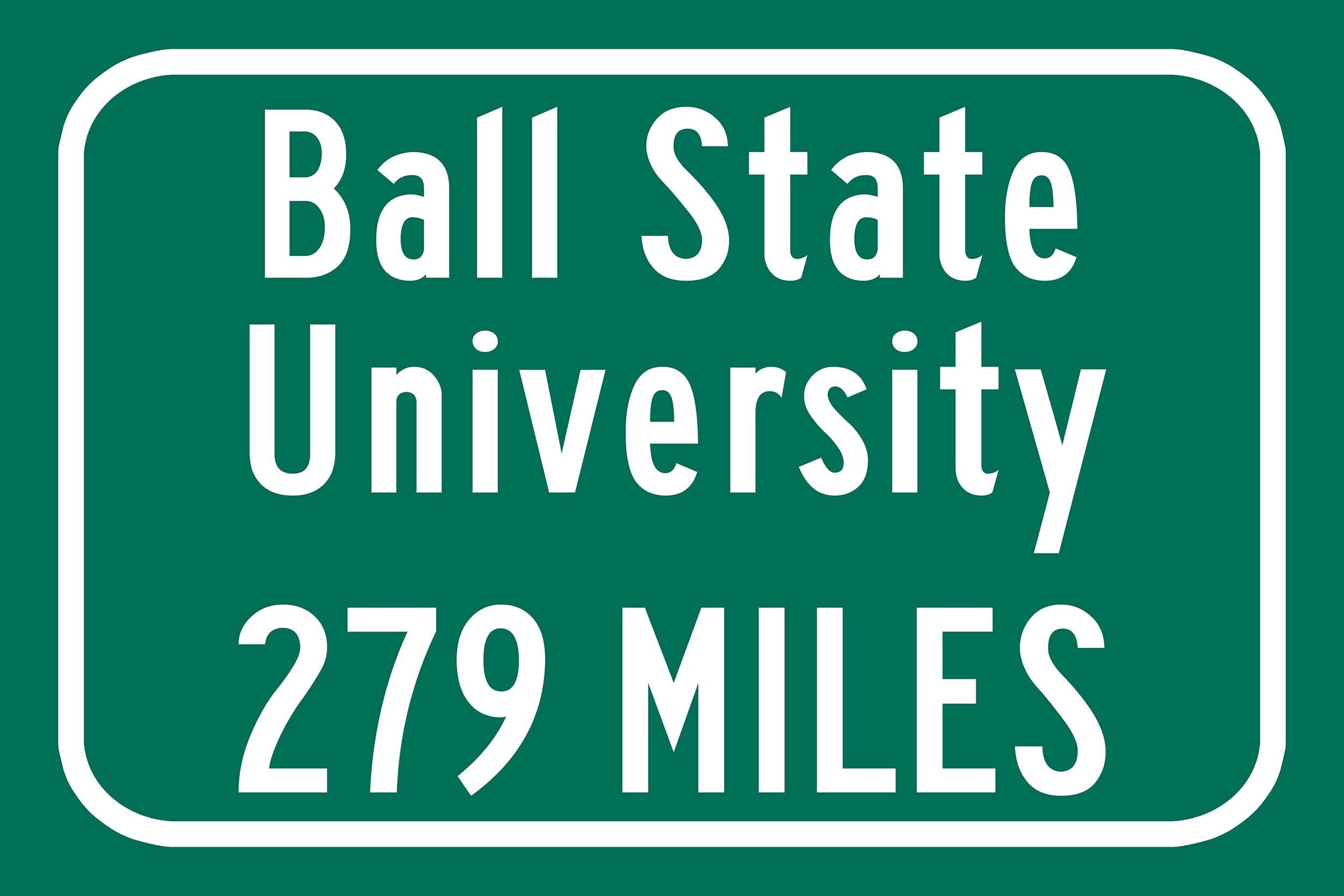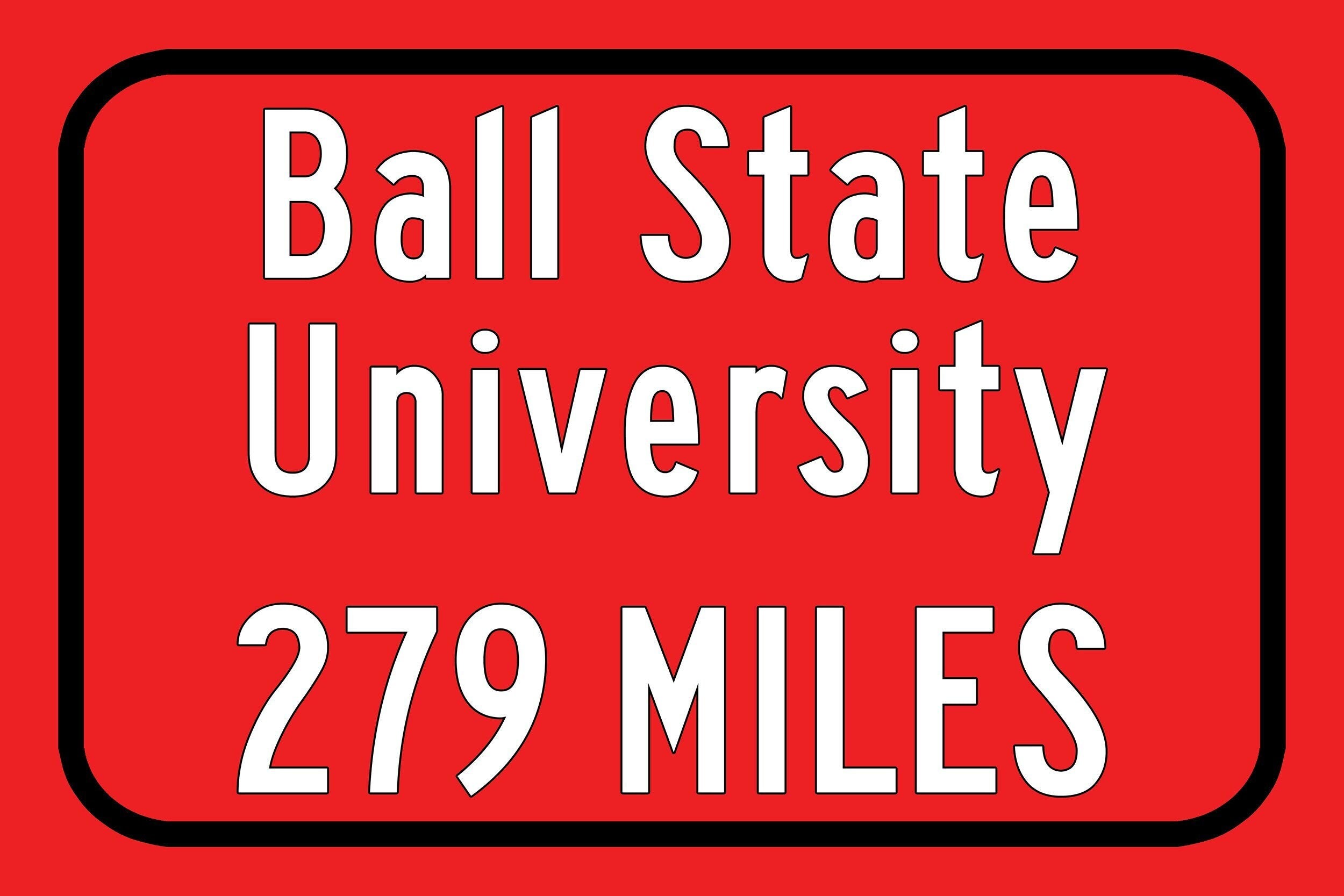 Ball State University / Custom College Highway Distance Sign / Ball State Cardinals / Muncie Indiana /