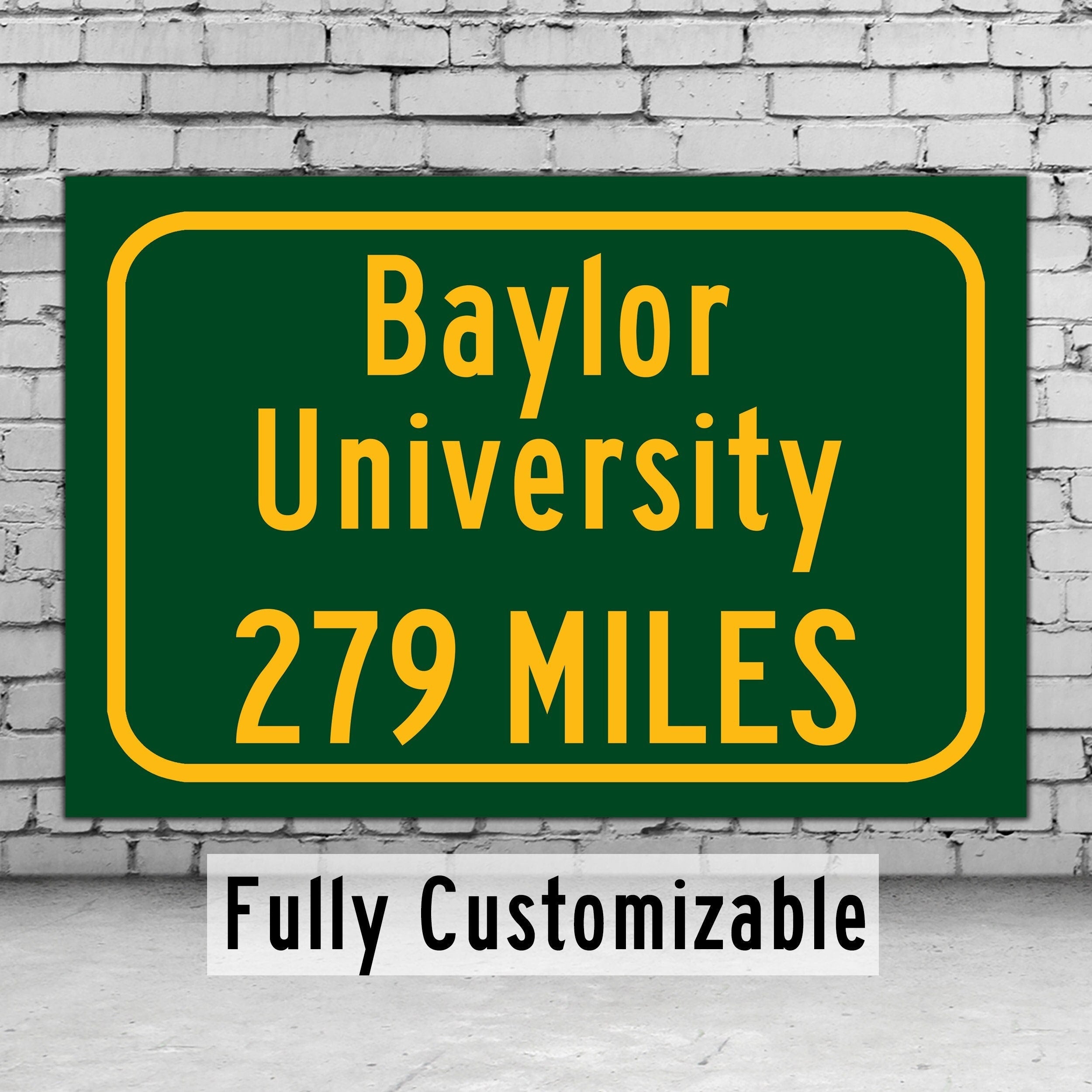 Personalized Highway Distance sign to Baylor University
