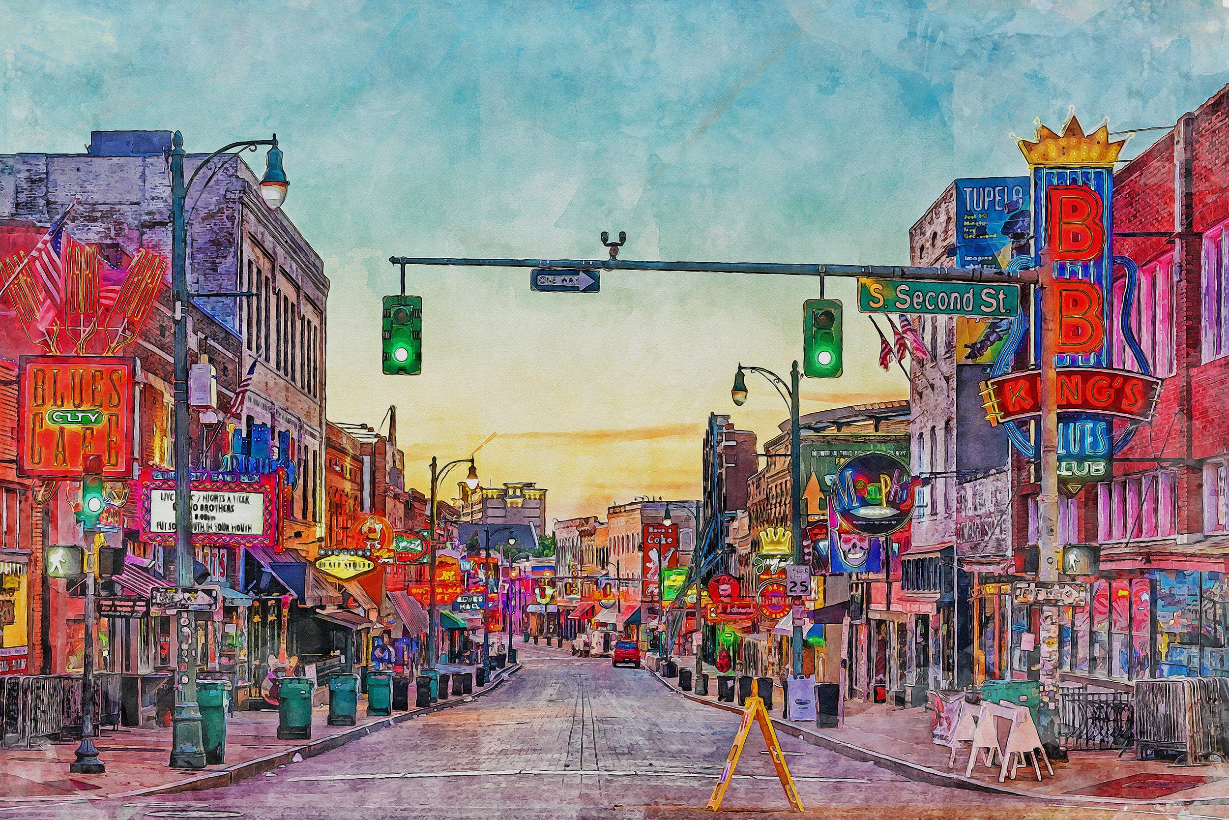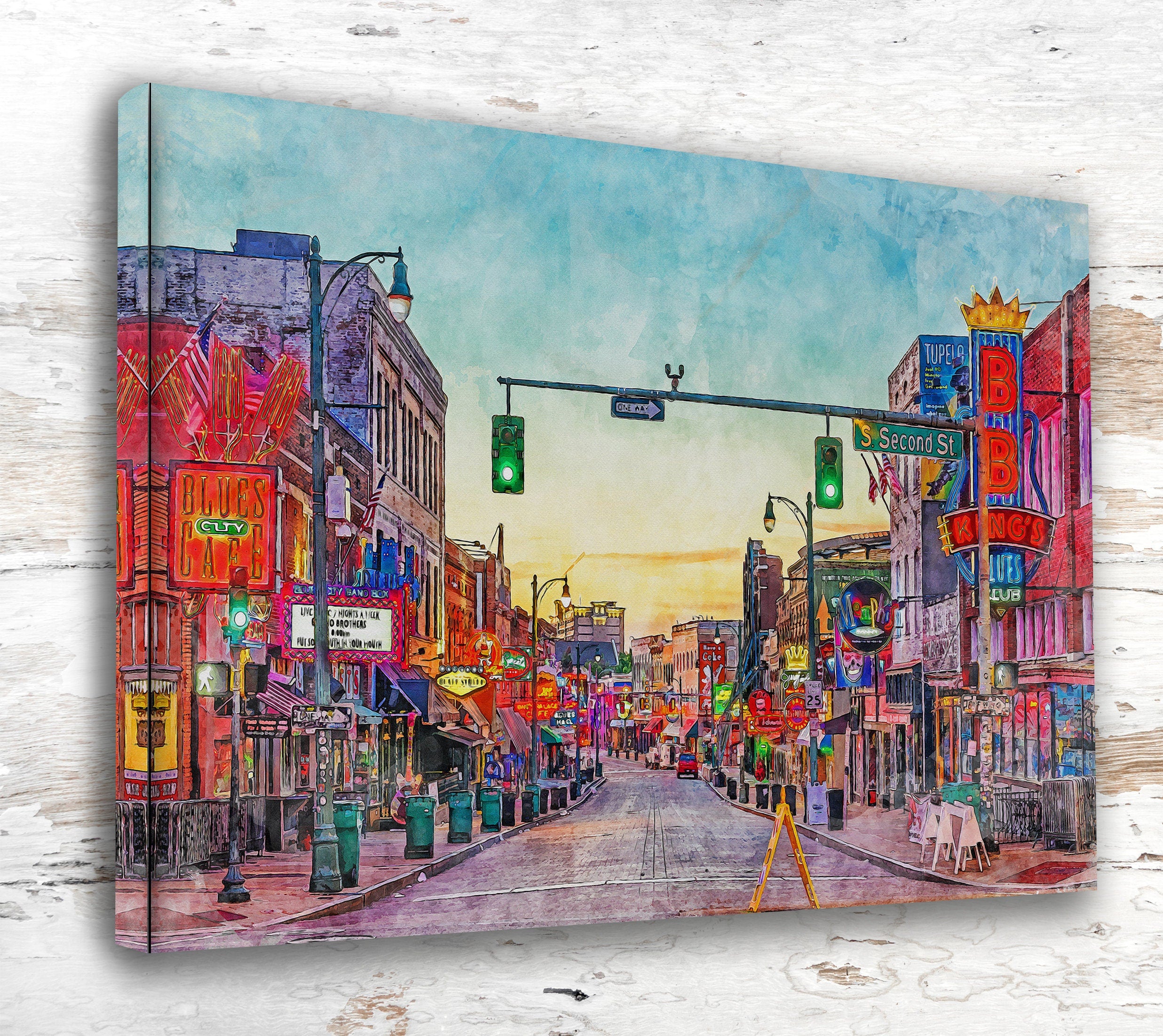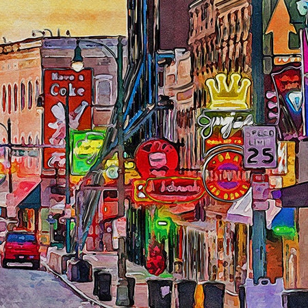 Beale Street in Memphis Tennessee watercolor canvas, Memphis Tennessee canvas watercolor print. This lovely piece of digitally created Beale Street Tennessee wall art is perfect for any room in your home. Memphis Tennessee is one of the most beautiful cities in the country.
