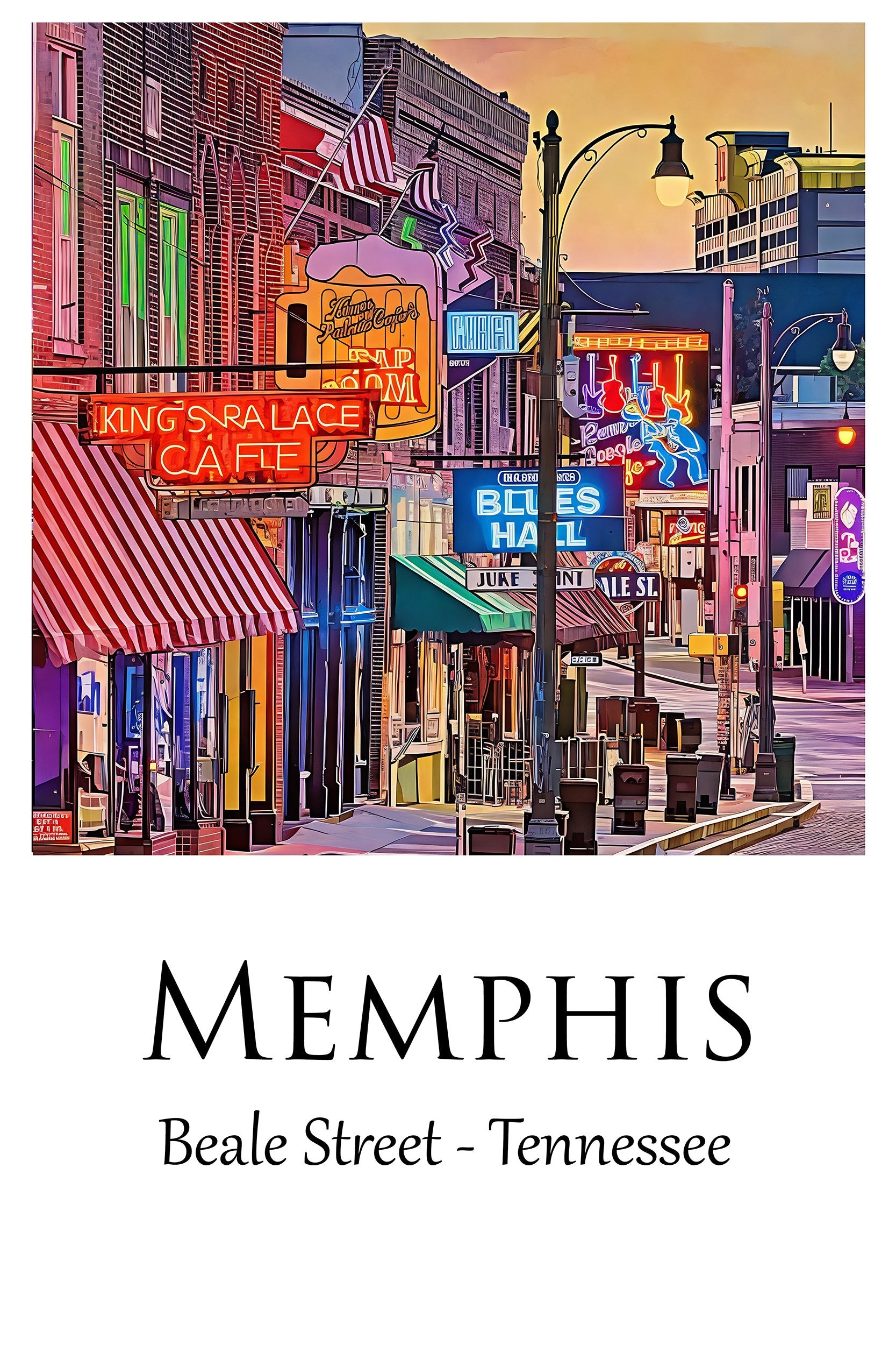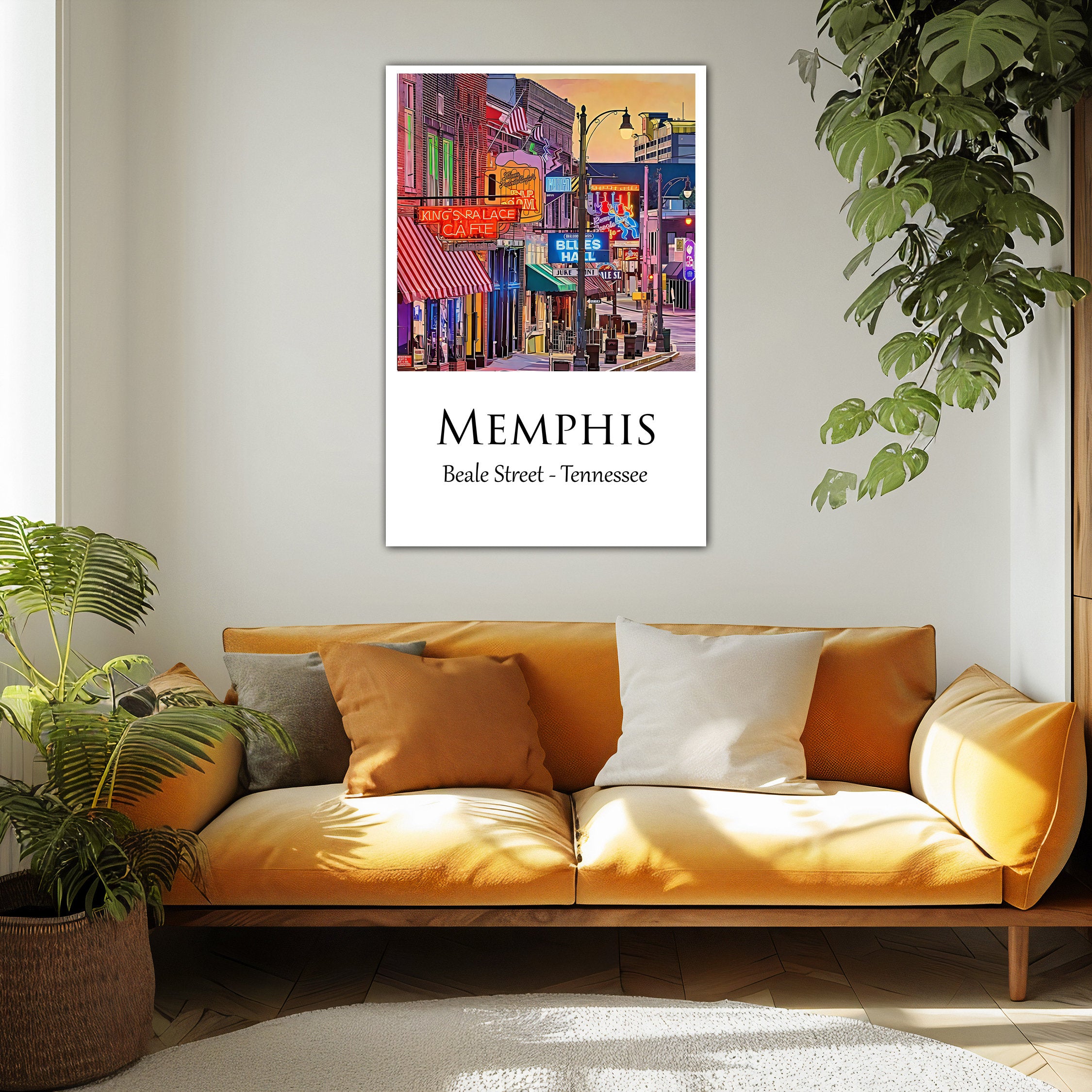 Bring the vibrant energy of Memphis into your home with this stunning Beale Street Memphis canvas print. Perfect for adding a touch of musical history and southern charm to your wall art collection, this Memphis travel art print captures the essence of this iconic street.