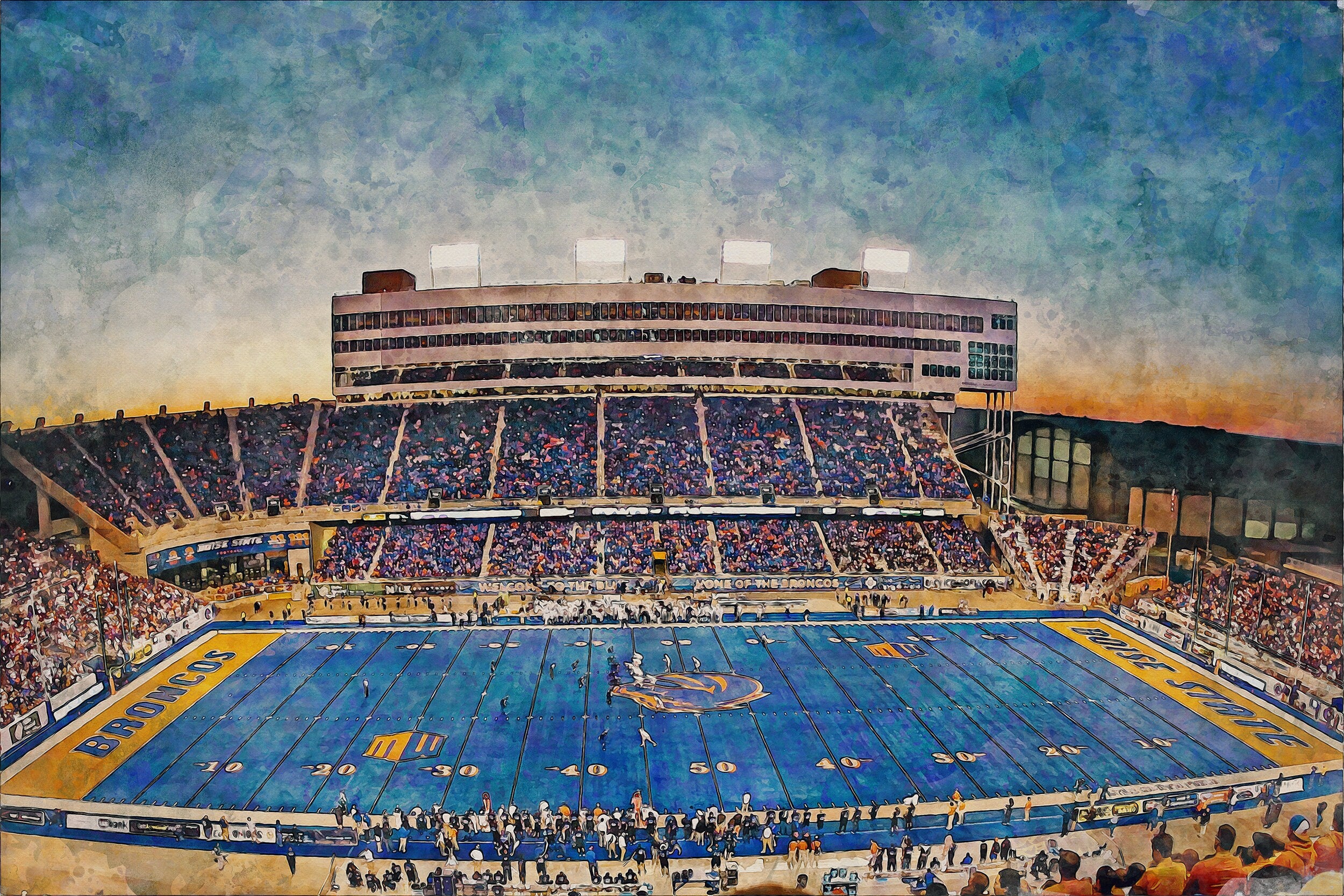 Beautiful Digital watercolor of Alberstons Stadium in Boise Idaho