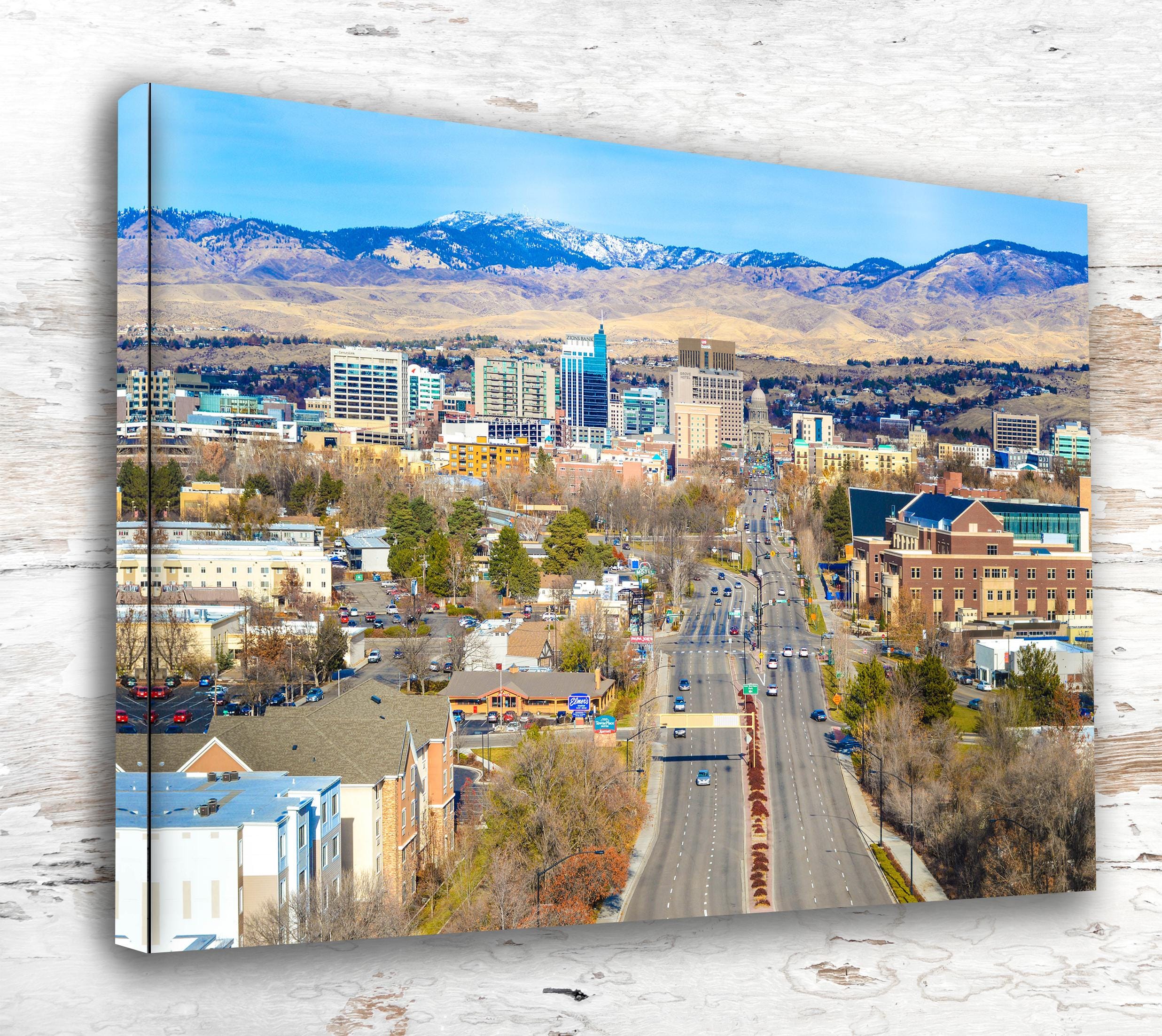 Add this Boise travel art canvas print to your collection today and let the charm of this city brighten up your space!