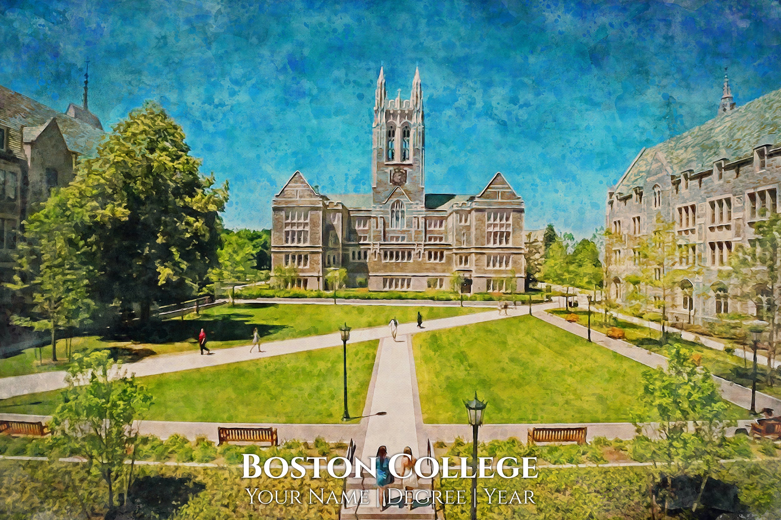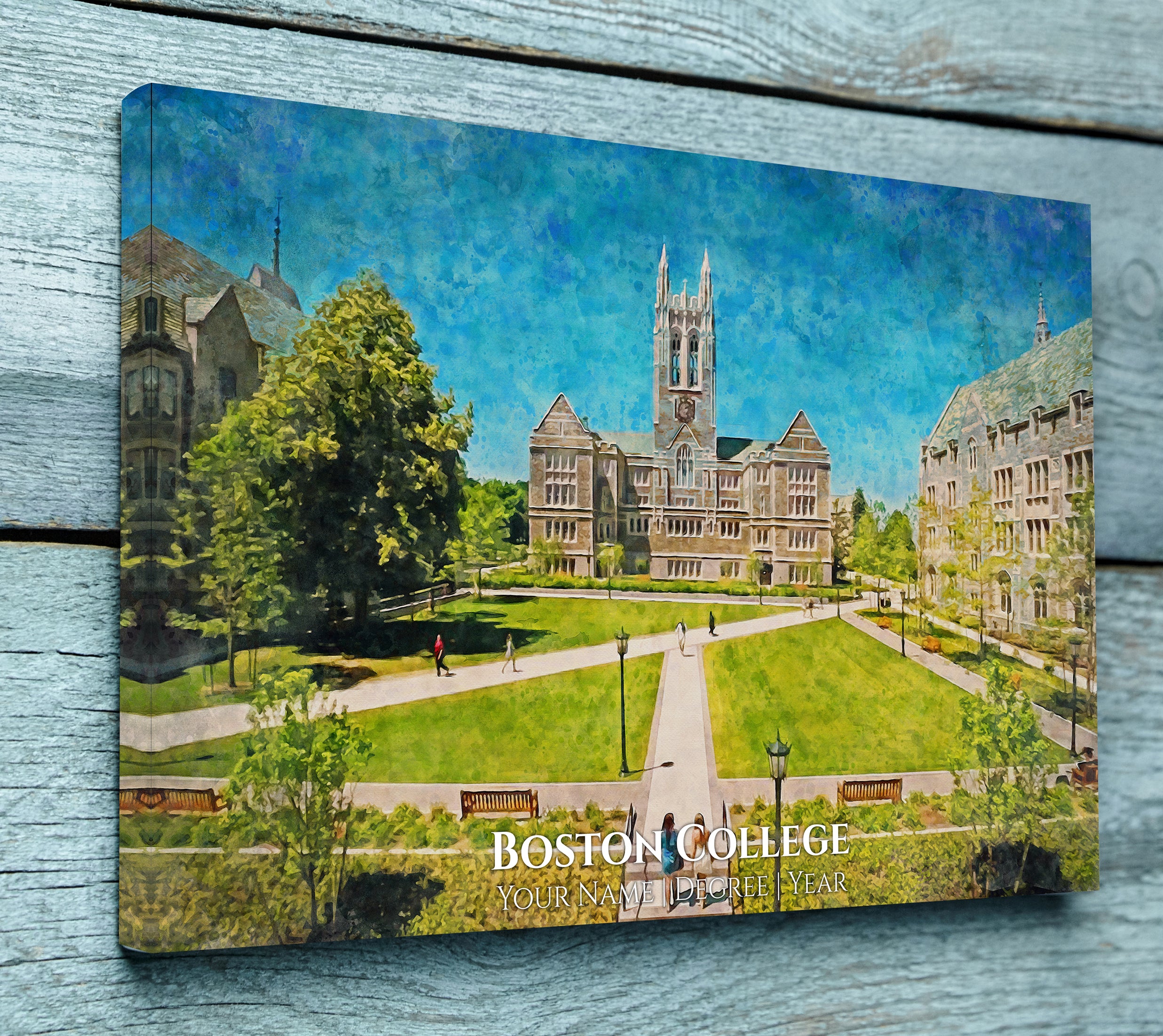 You will love these watercolor canvas fine art prints of Boston College . Perfect for a graduation gift. These make wonderful gift for Boston College Alumni and fans. Feel free to customize it as well when you check out. We will send a proof for you to approve before we print so please check your email about 24hrs after you order