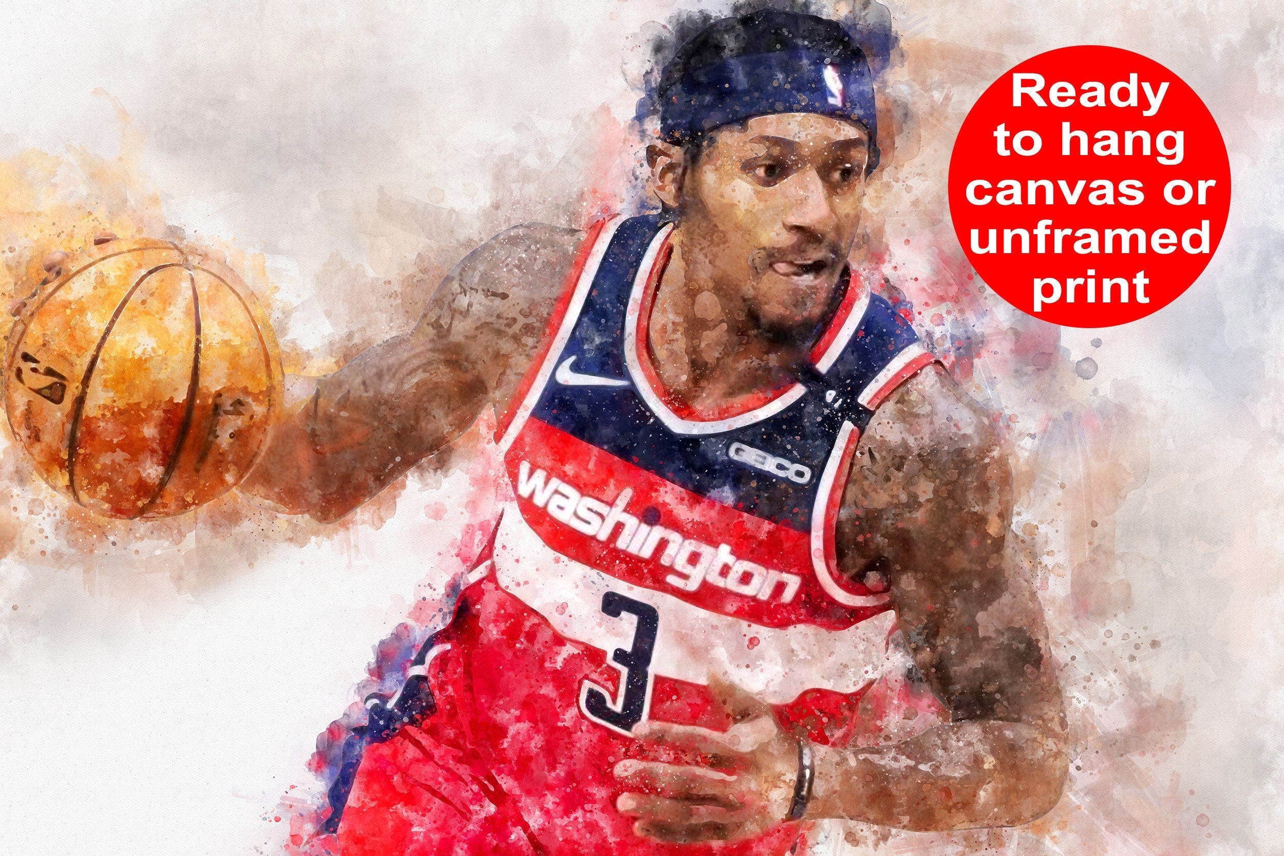 Great for a piece of Bradley Beal wall art. Available in several sizes as an unframed print or a ready to hang mounted canvas