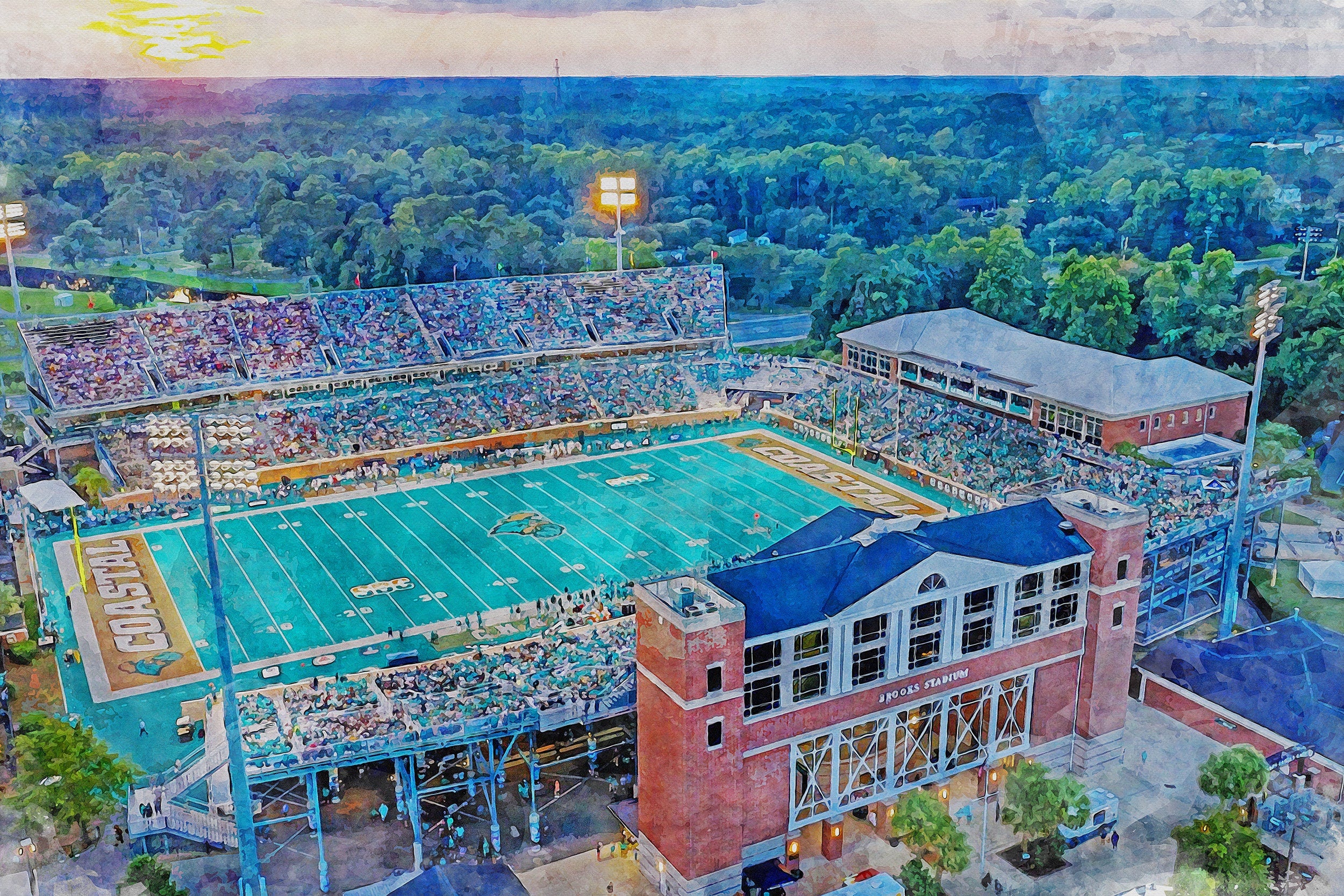 Beautiful Digital watercolor of the Brooks Stadium Coastal Carolina in Conway South Carolina