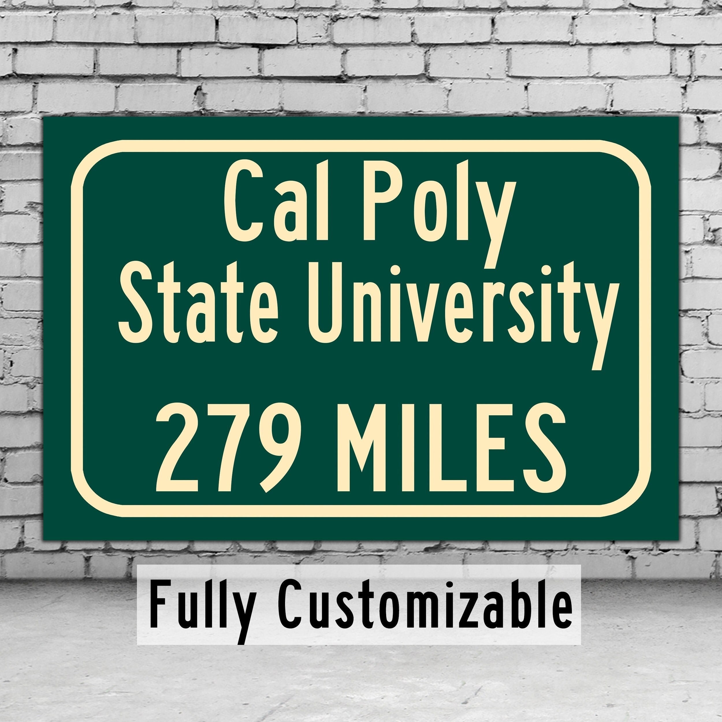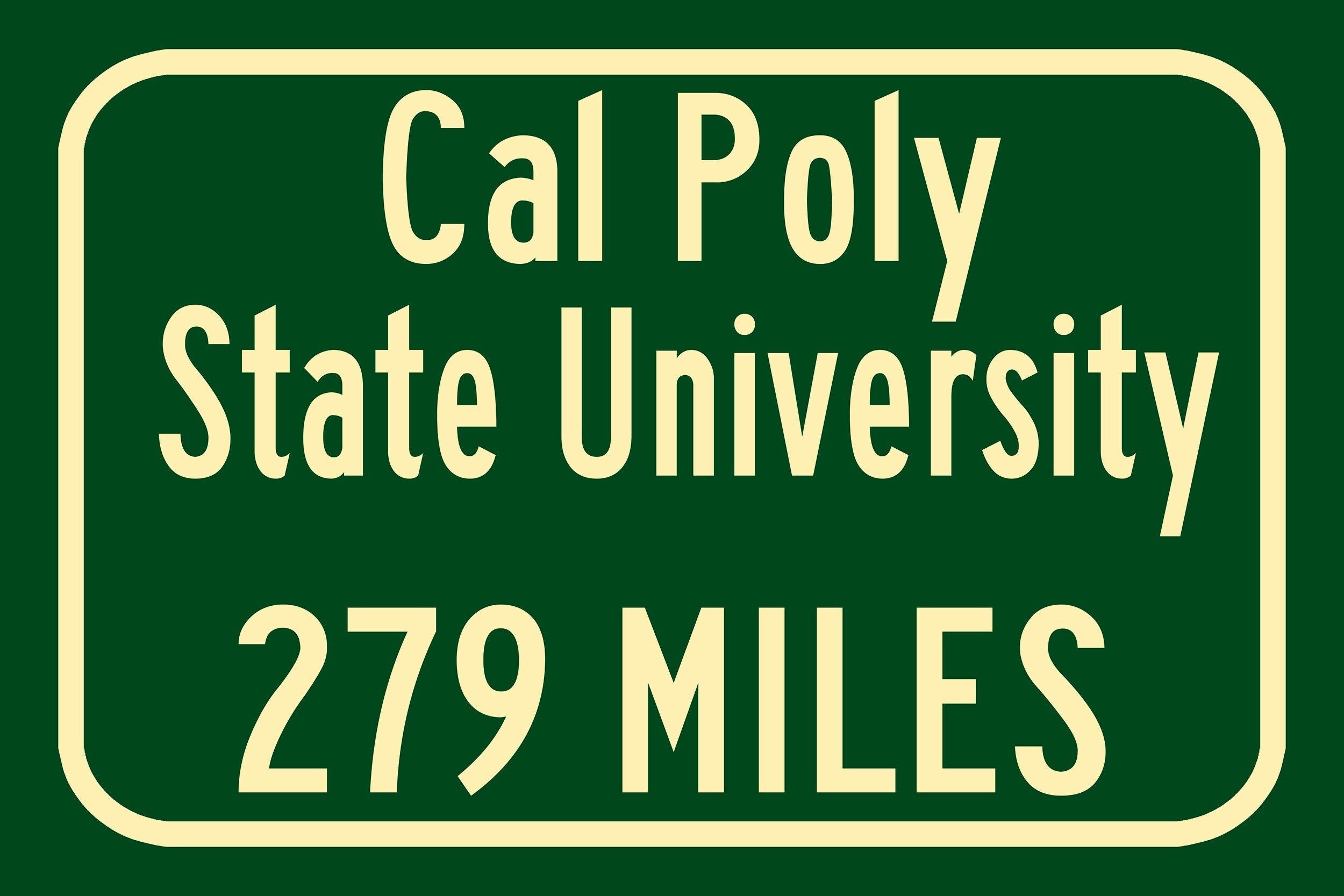 Personalized Highway Distance sign to California Polytechnic State University / California Polytechnic State University sign.