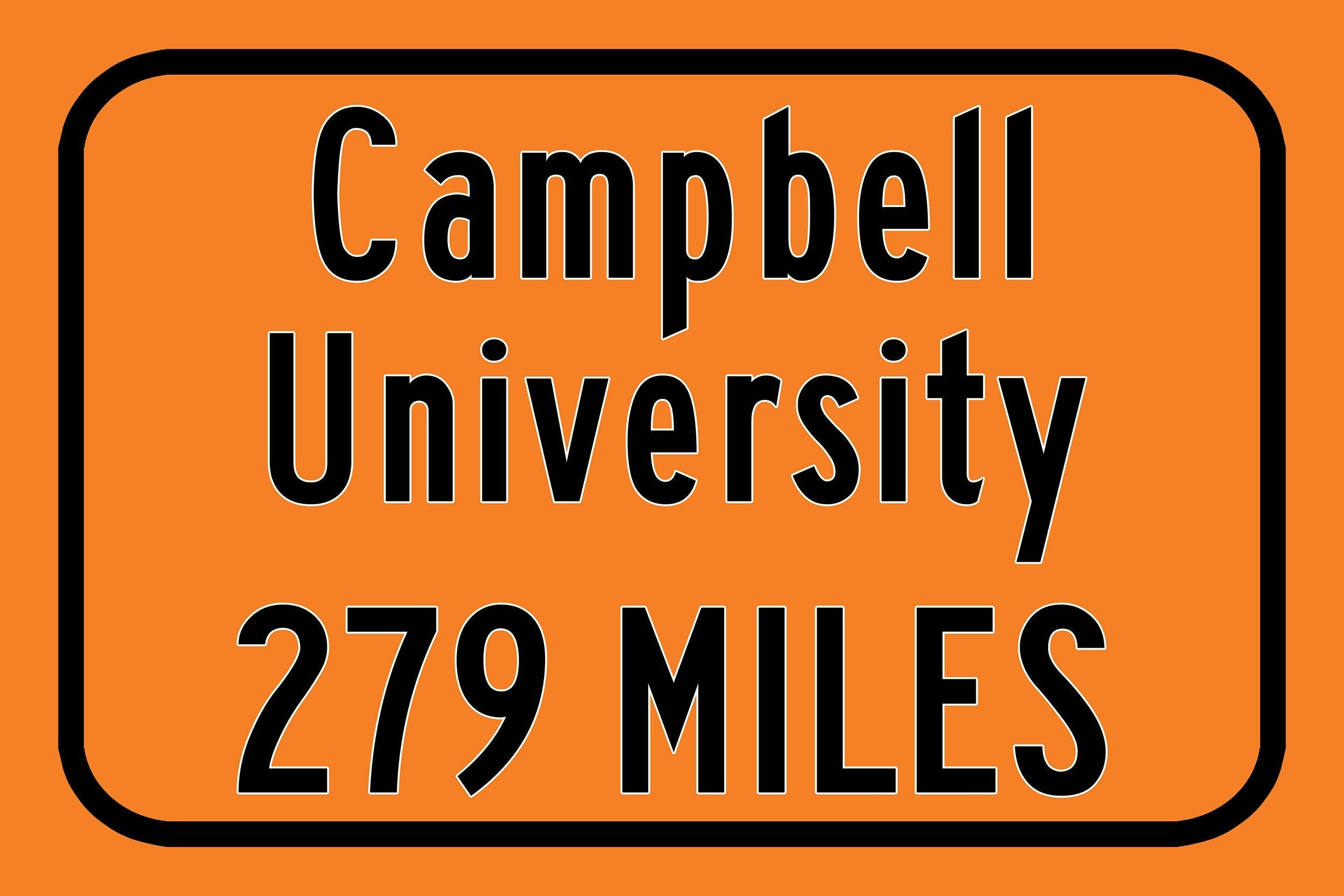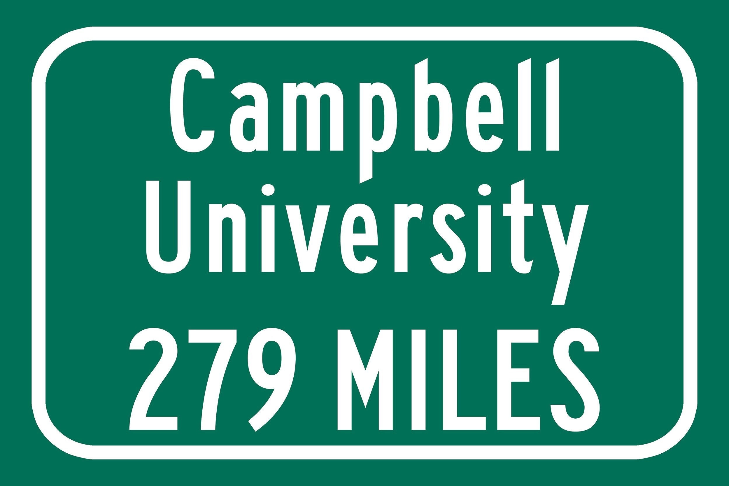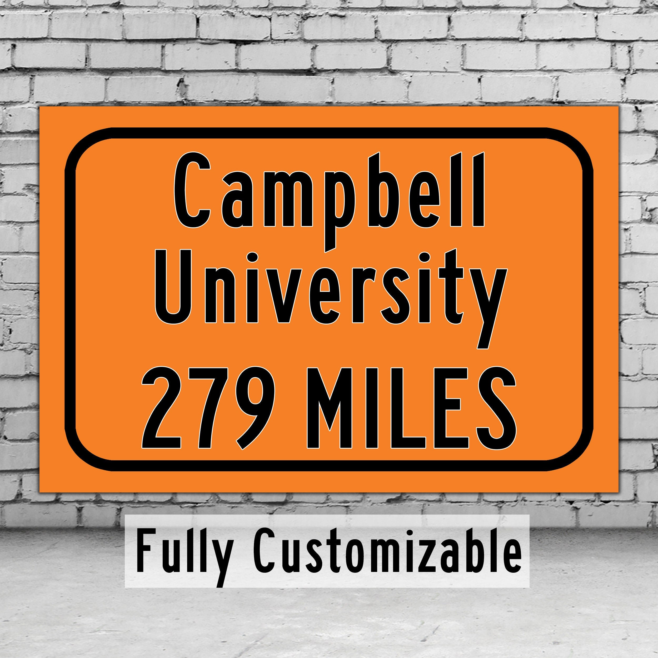 Personalized Highway Distance sign to Campbell University / Campbell University sign. / Campbell University Fighting Camels
