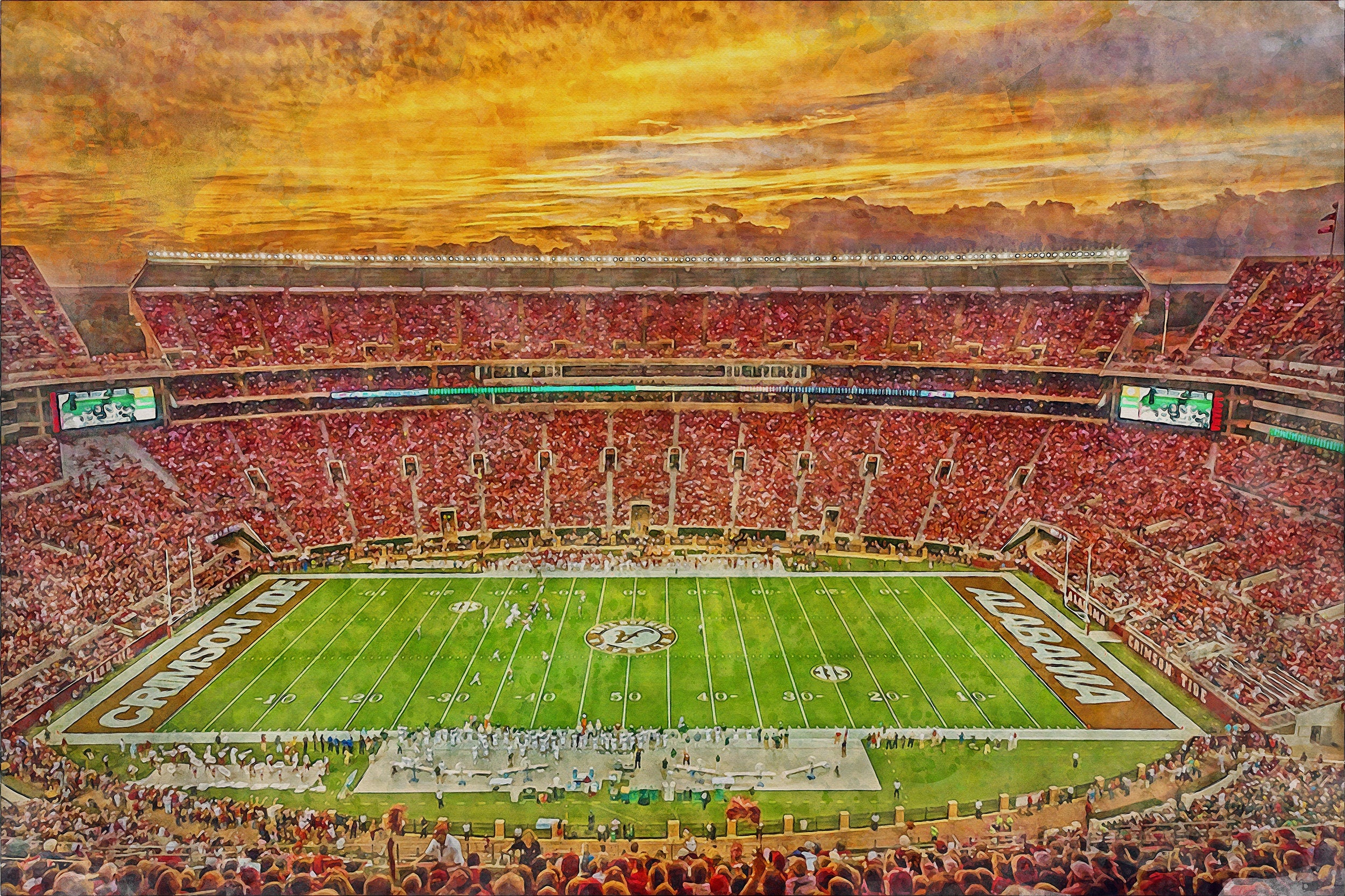 Beautiful Digital watercolor of Bryant-Denny Stadium in Tuscaloosa Alabama
