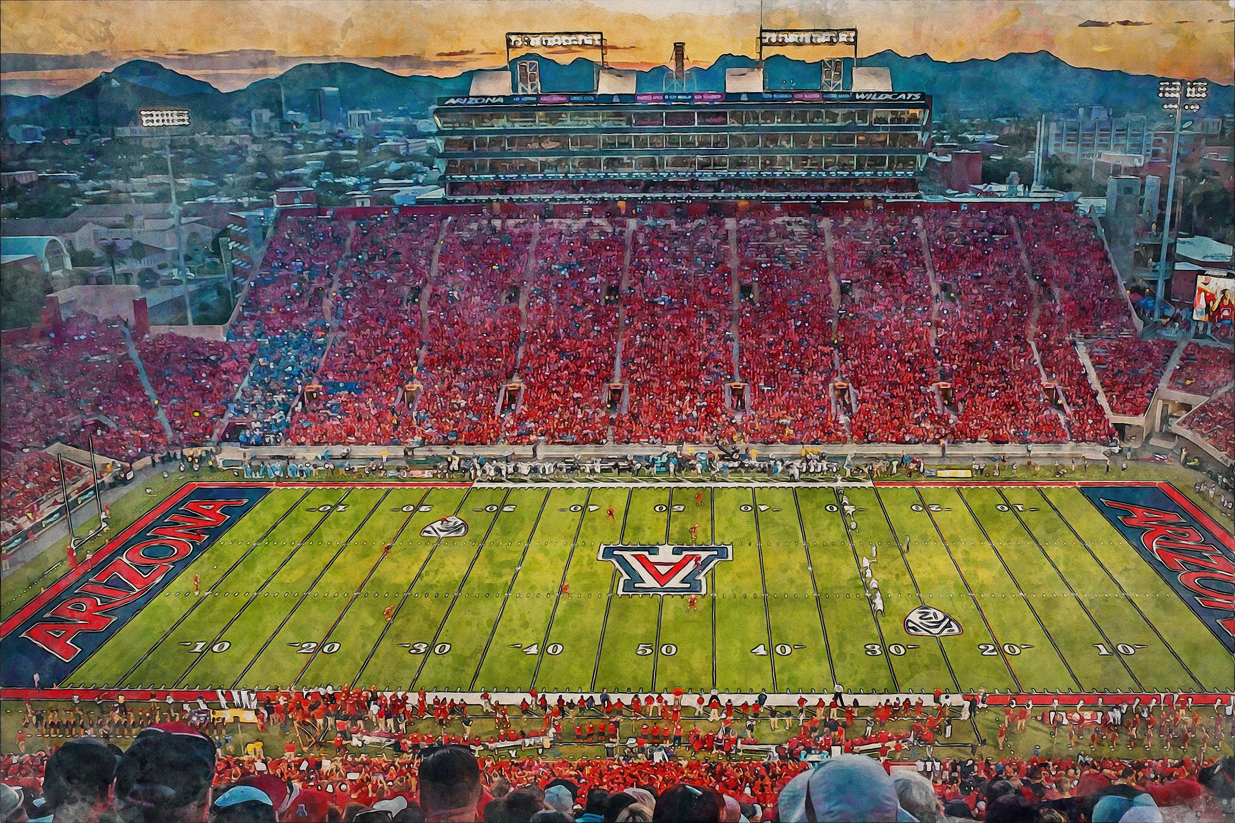 Canvas-Print of Arizona Wildcats, Arizona Stadium , Watercolor Digital Sketch Print Canvas Print, Arizona Football, Tucson Arizona