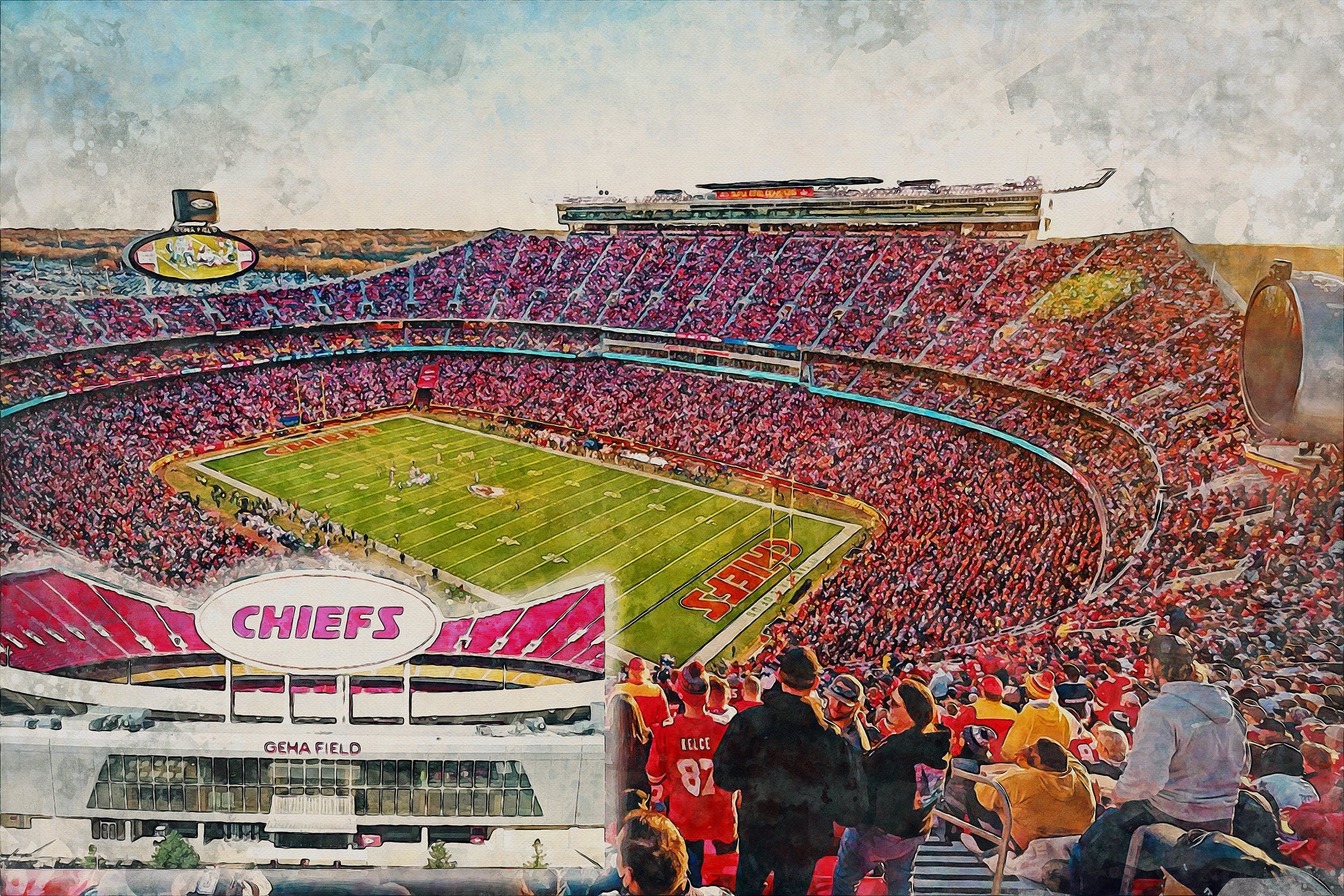 Beautiful Digital watercolor of Arrowhead Stadium in Kansas City Missouri