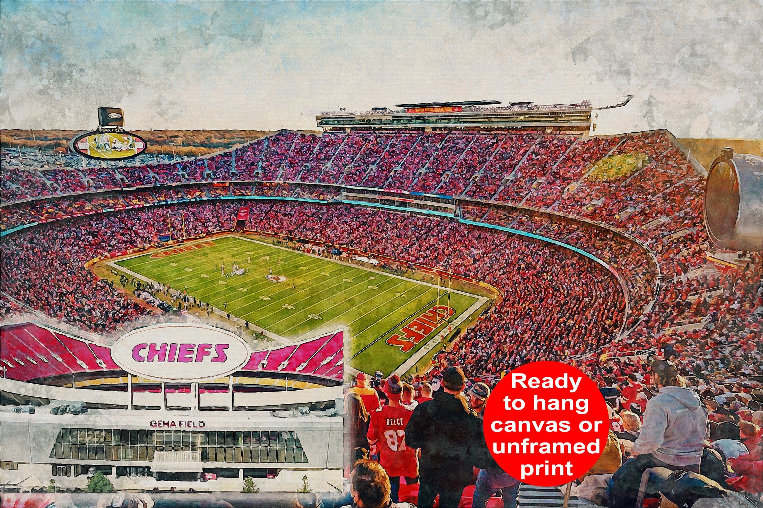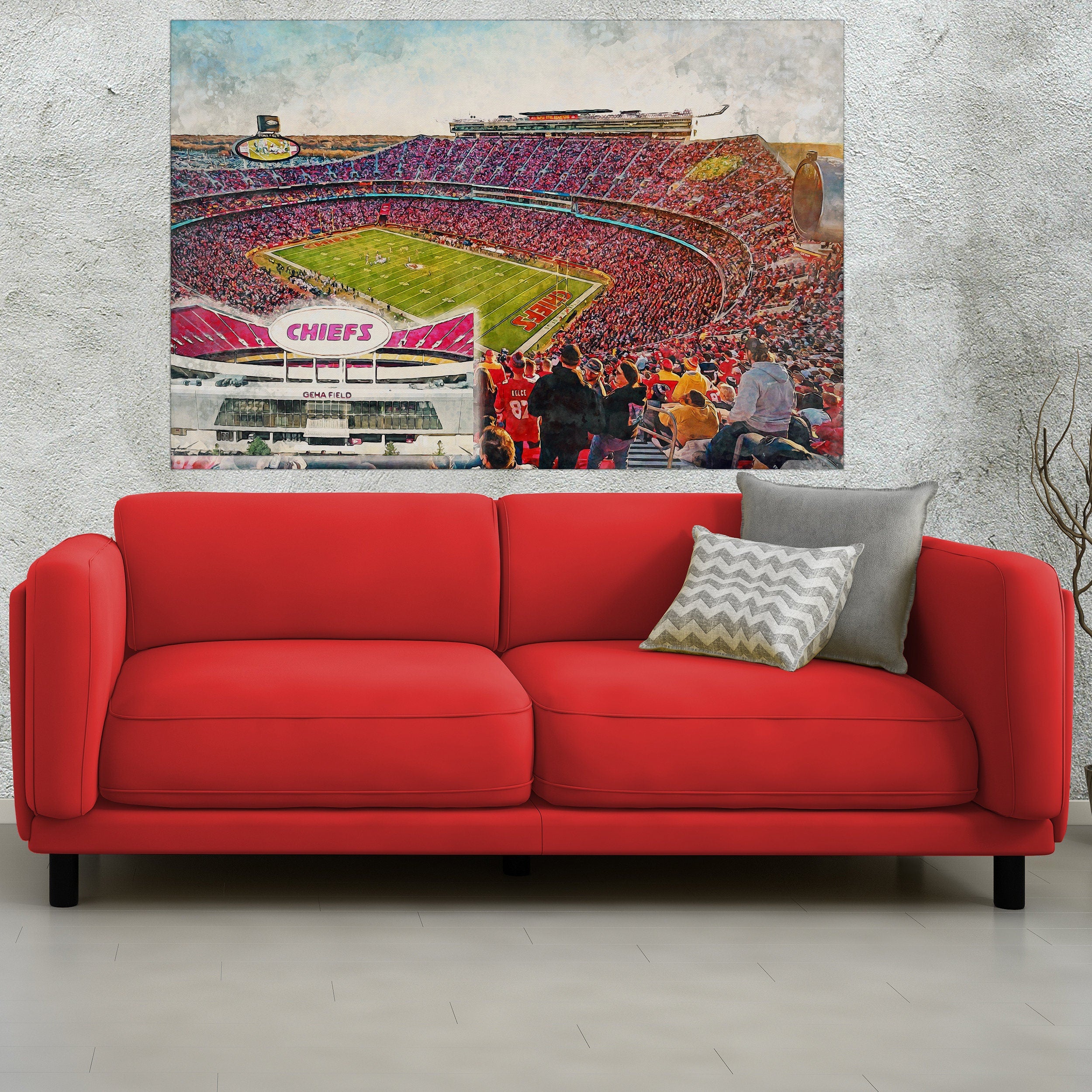 This Arrowhead Stadium wall art, In Kansas City Missouri, is the perfect decor for any home. This print of my digitally custom created wall art will last a lifetime. Arrowhead Stadium in Kansas City Missouri