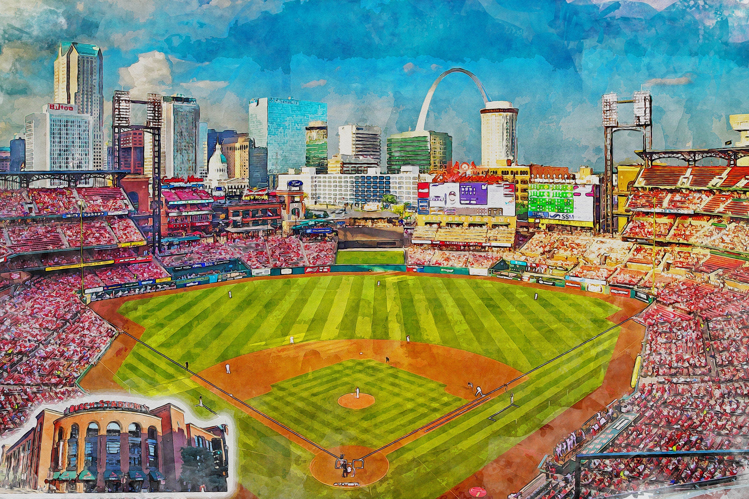 Beautiful watercolor print of Busch Stadium in St. Louis Missouri . WE GO HUGE!! Not some itty-bitty sign, Our signs are as large as 2 x 3 FEET! Brewers Sports
