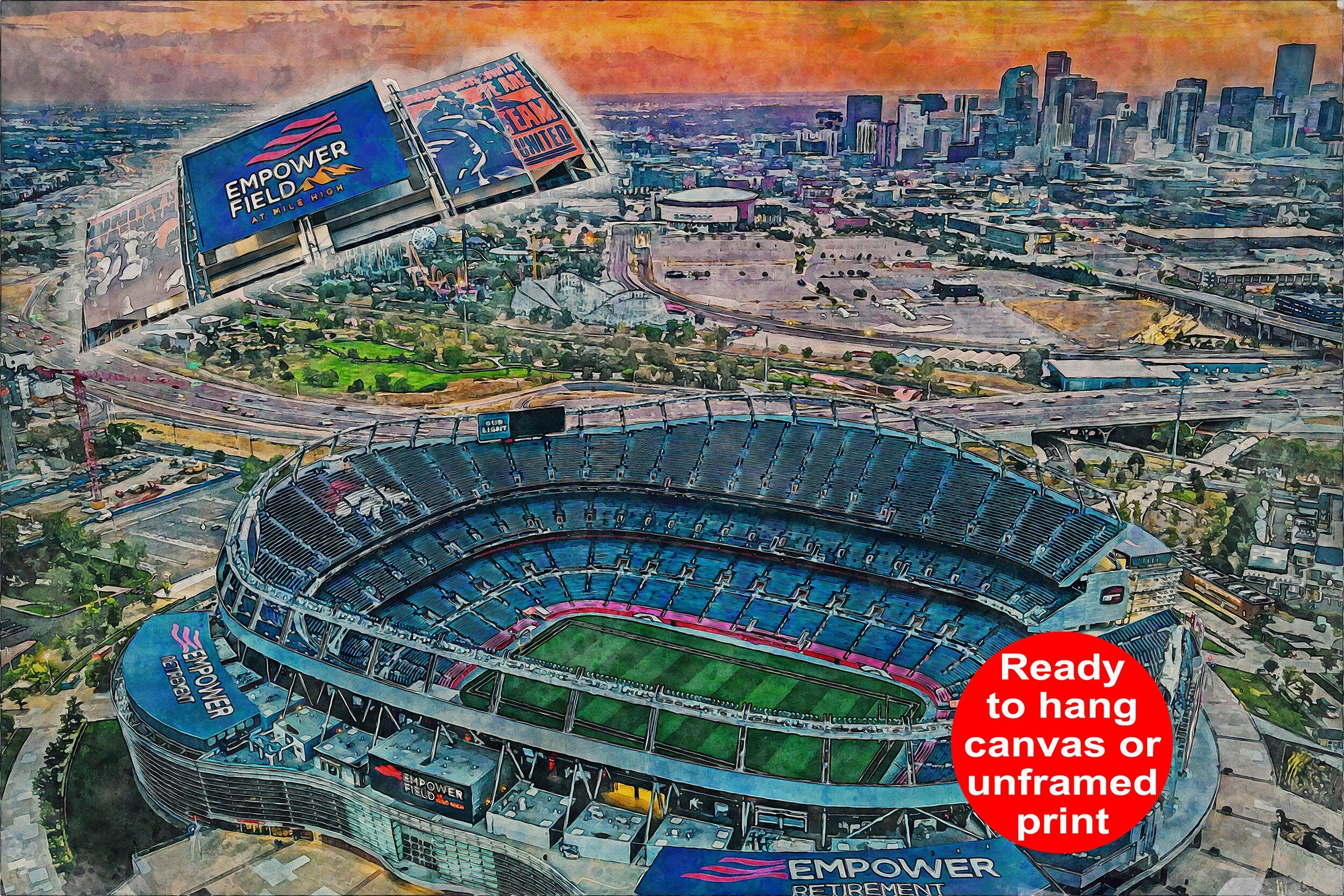 This Empower Field in Denver Colorado is the perfect decor for any home. This print of my digitally custom created wall art will last a lifetime. Empower Field Denver Colorado. Denver Broncos poster