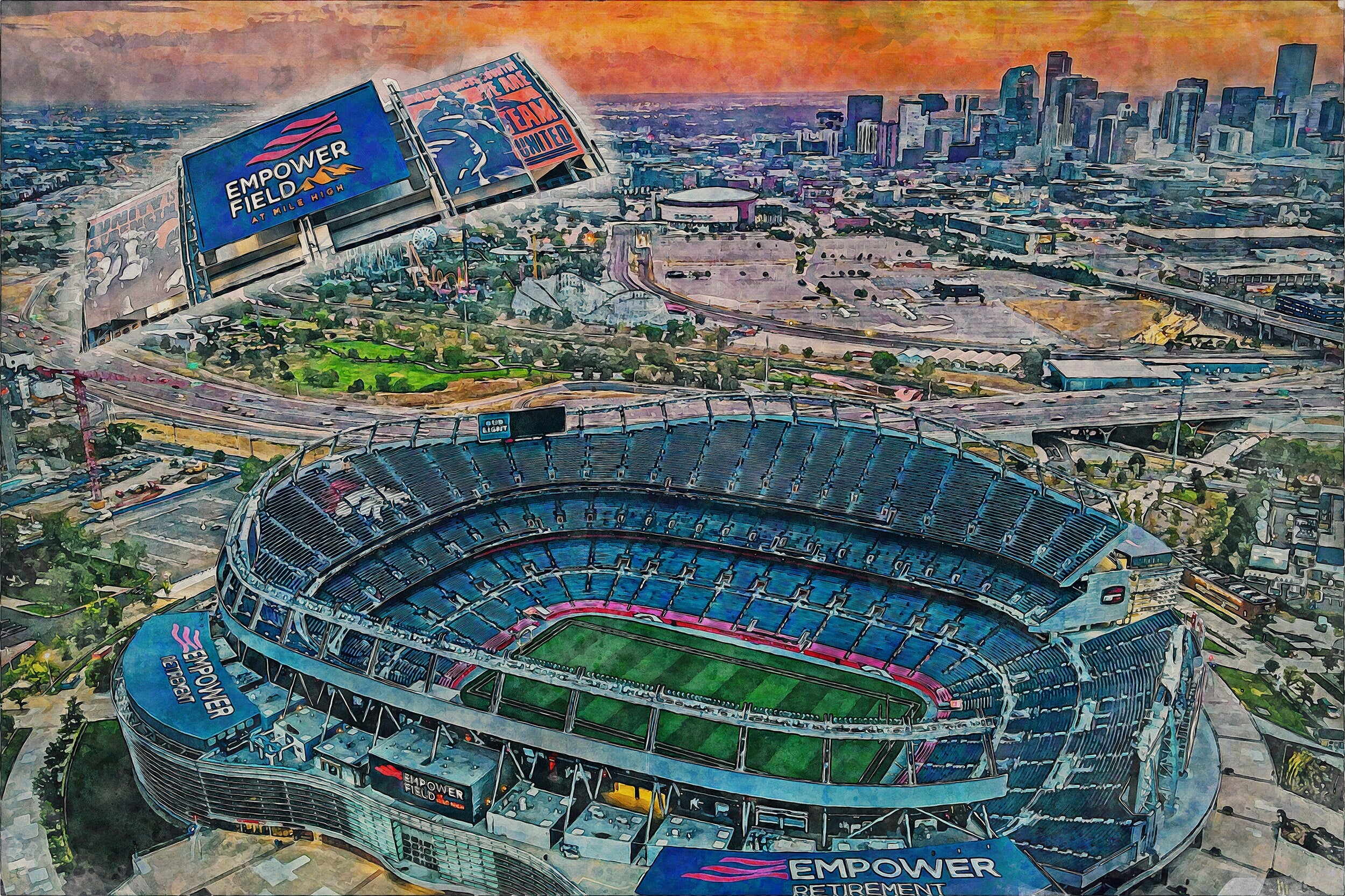 Beautiful Digital watercolor of Empower Field at mile high in Denver Colorado