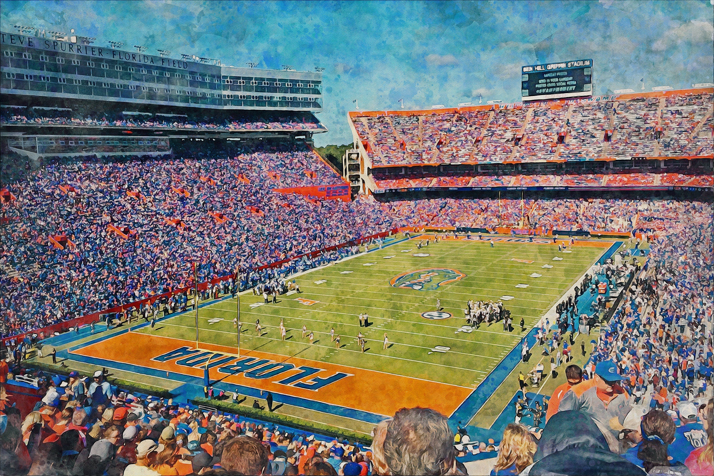 Beautiful Digital watercolor of Ben Hill Griffin Stadium in Gainesville Florida
