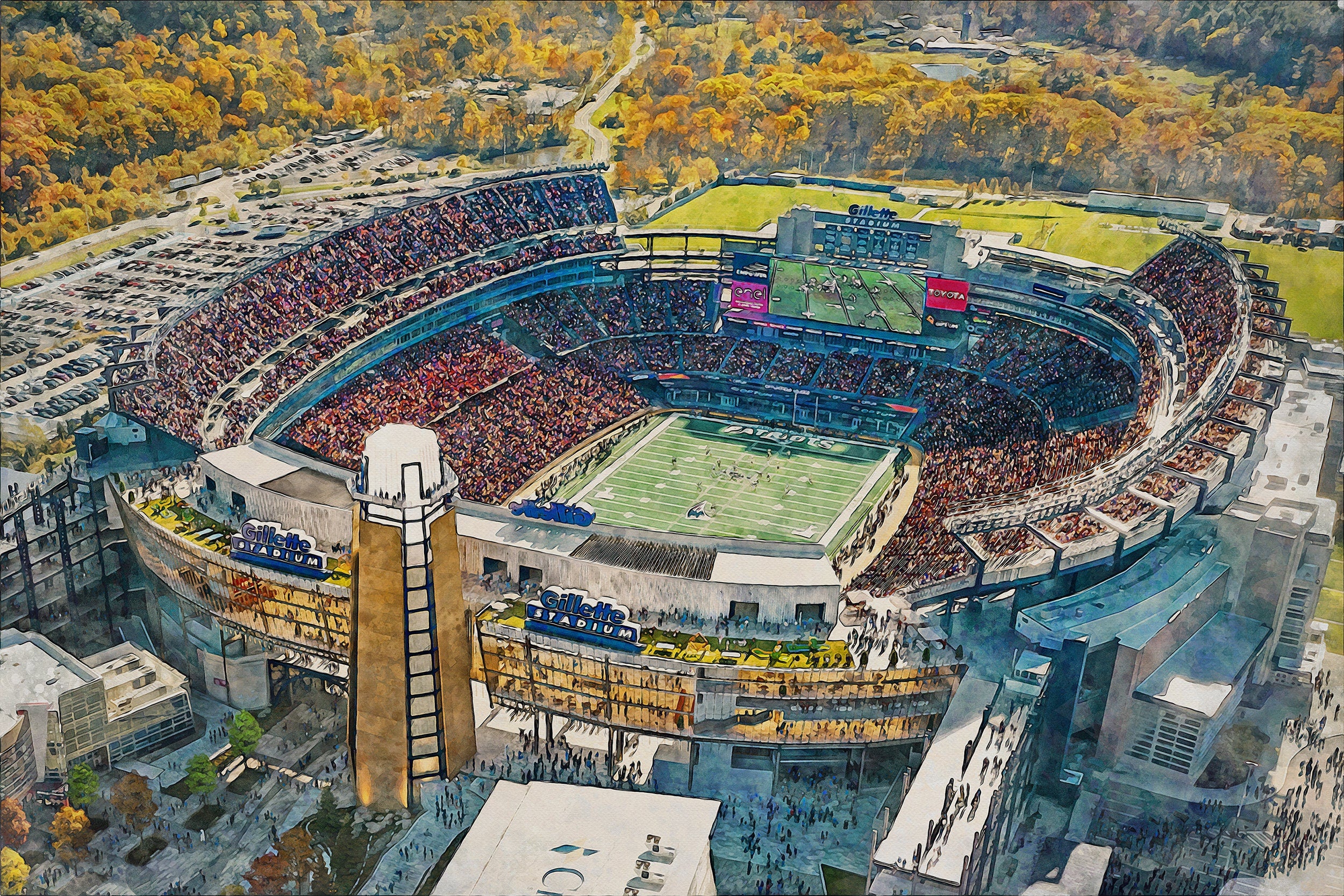 Beautiful Digital watercolor of Gillette Stadium in Boston Massachusetts