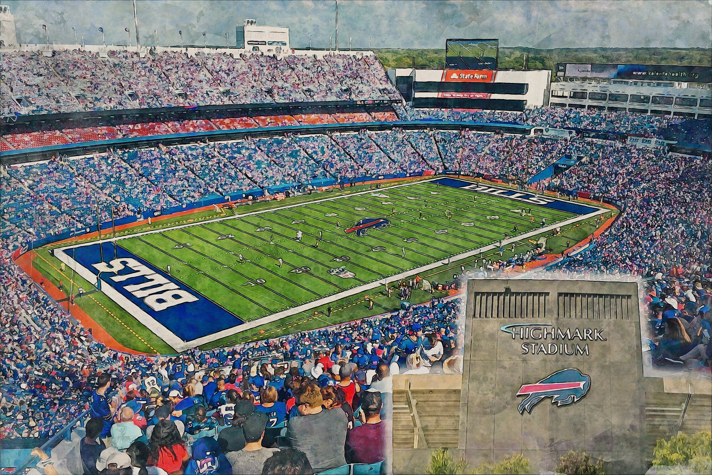 Beautiful Digital watercolor of Highmark Stadium in Buffalo New York
