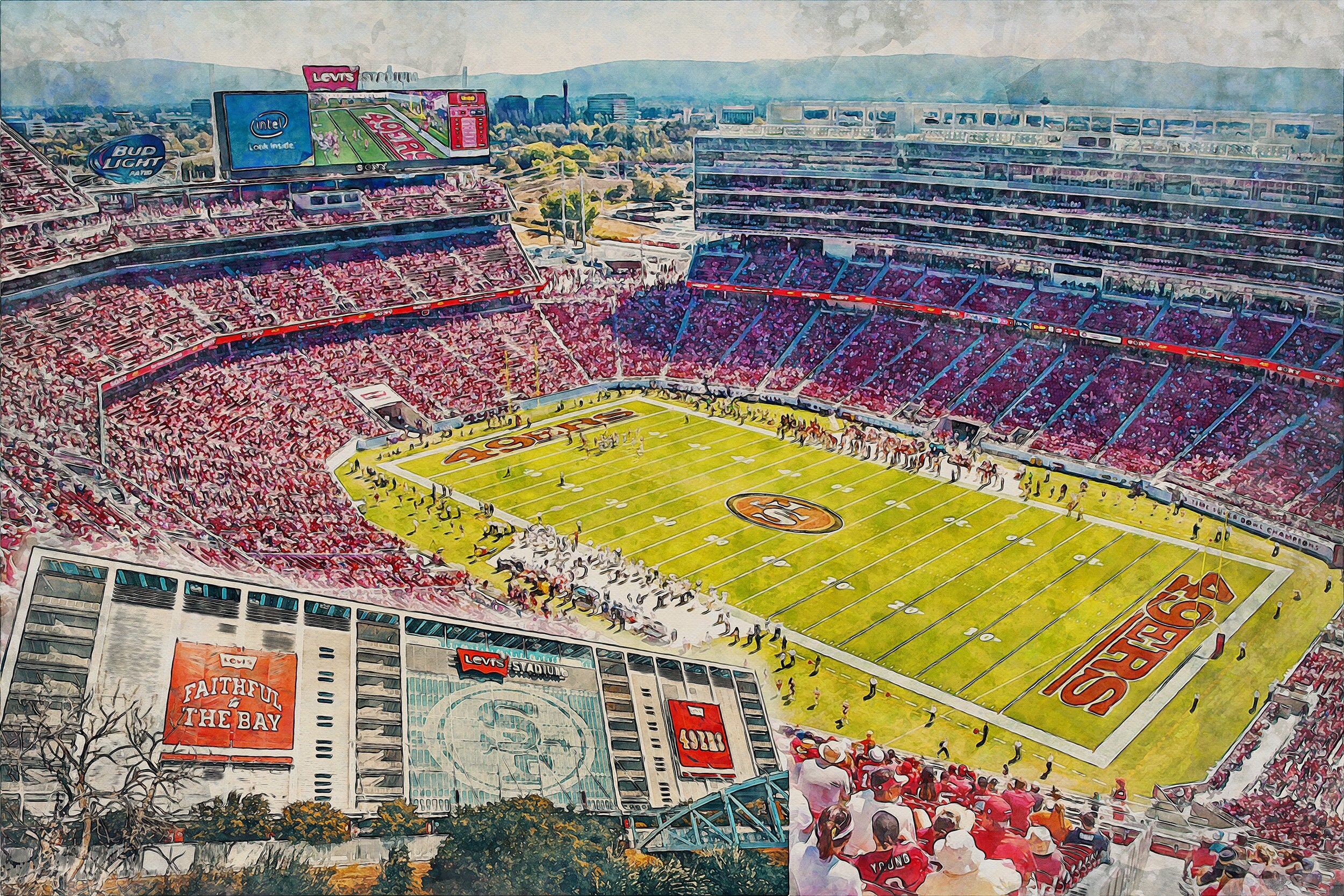 Beautiful Digital watercolor of Levi’s Stadium in San Francisco California