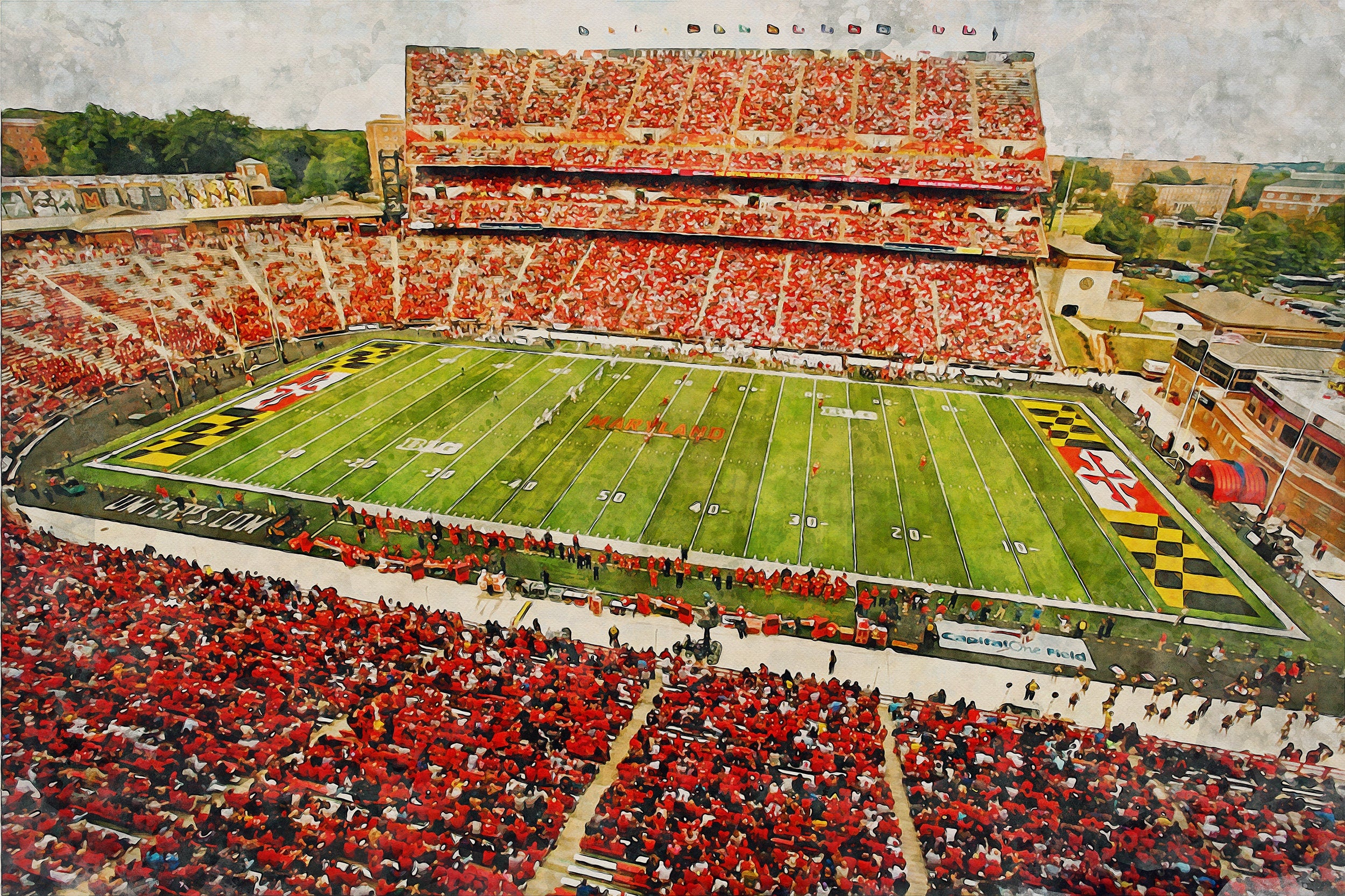 Beautiful Digital watercolor of Capital One Field at University of Maryland