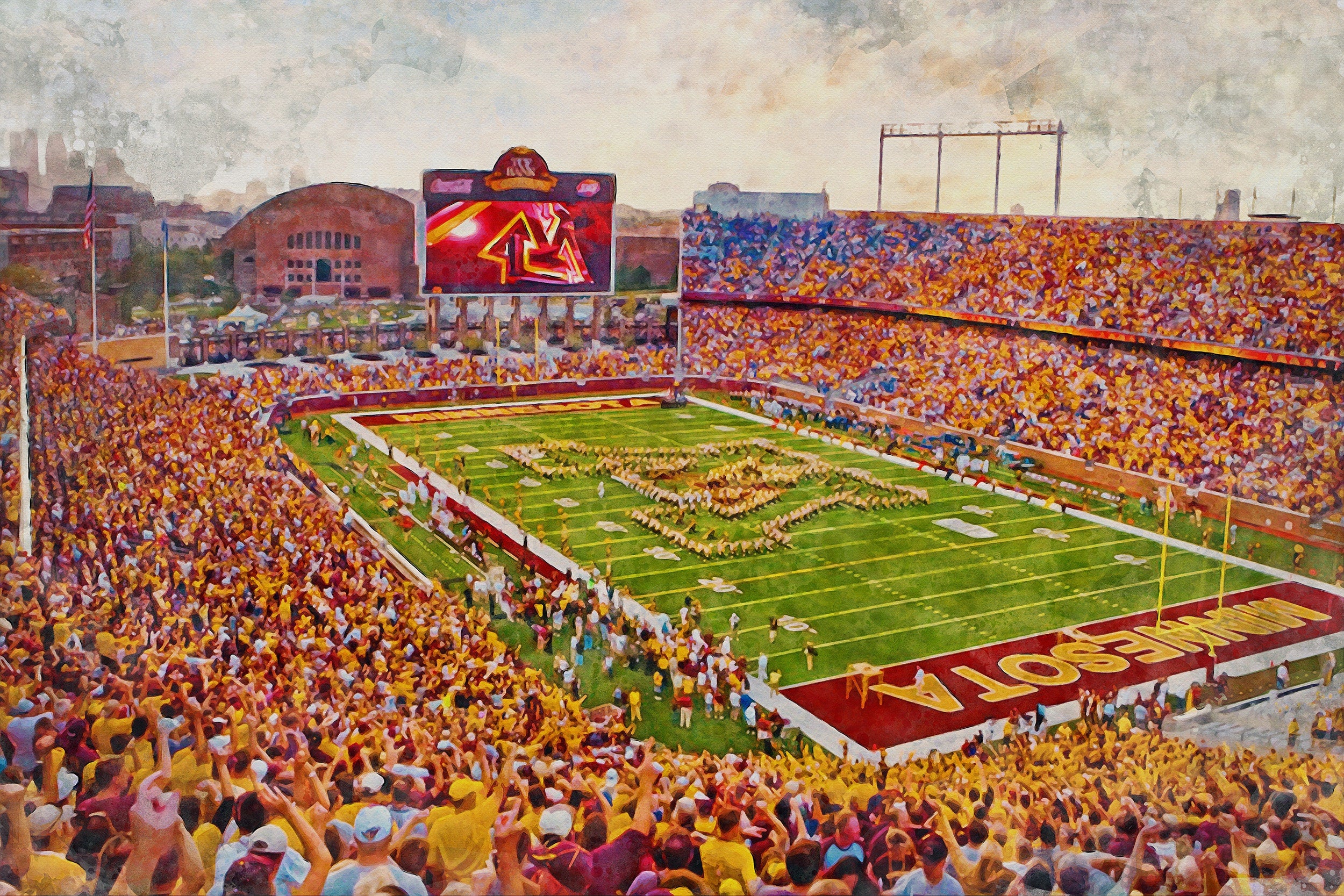 Beautiful Digital watercolor of Huntington Bank Stadium at University of Minnesota