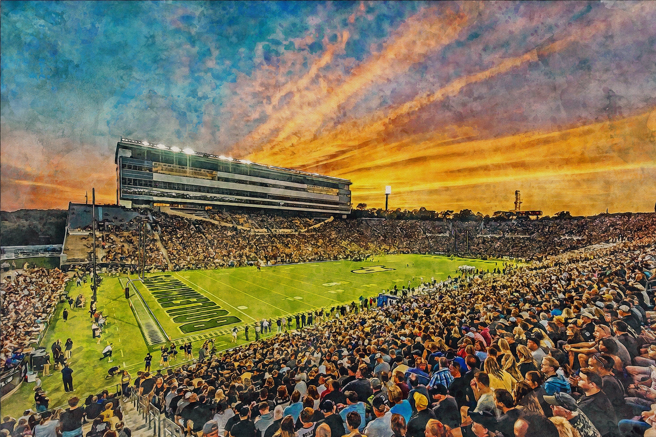 Beautiful Digital watercolor of Ross–Ade Stadium in Tippecanoe Indiana