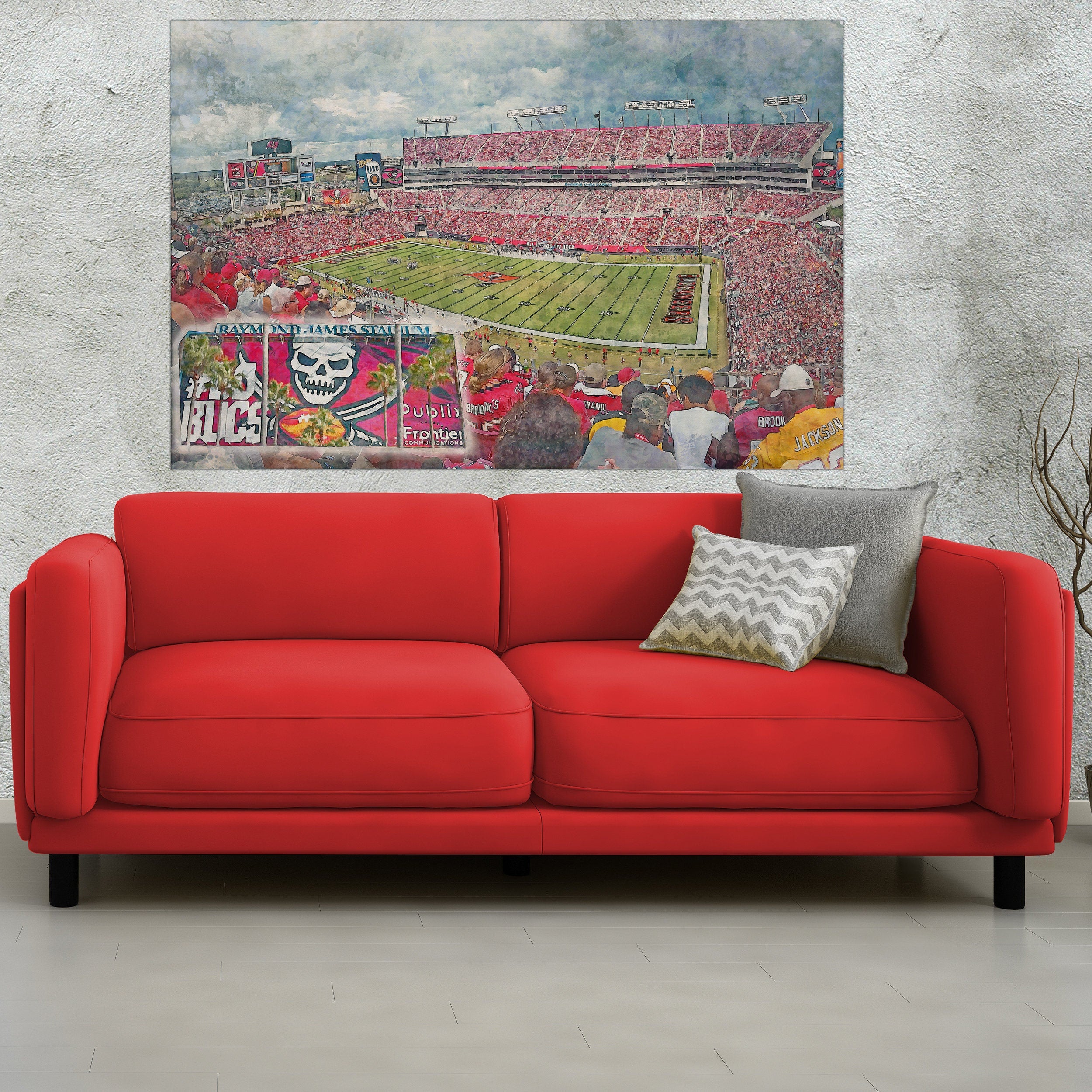 This Raymond James Stadium, Tampa Florida , the perfect decor for any home. This print of my digitally custom created wall art will last a lifetime. Raymond James Stadium in Tampa Florida, Tampa Bay Bucaneers
