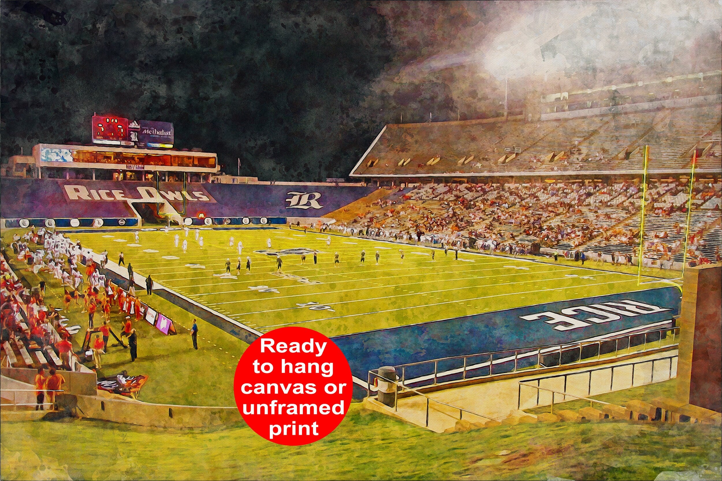 Canvas-Print of Rice Owls, Rice Stadium , Watercolor Digital Sketch Print Canvas Print, Houston Texas, Rice University