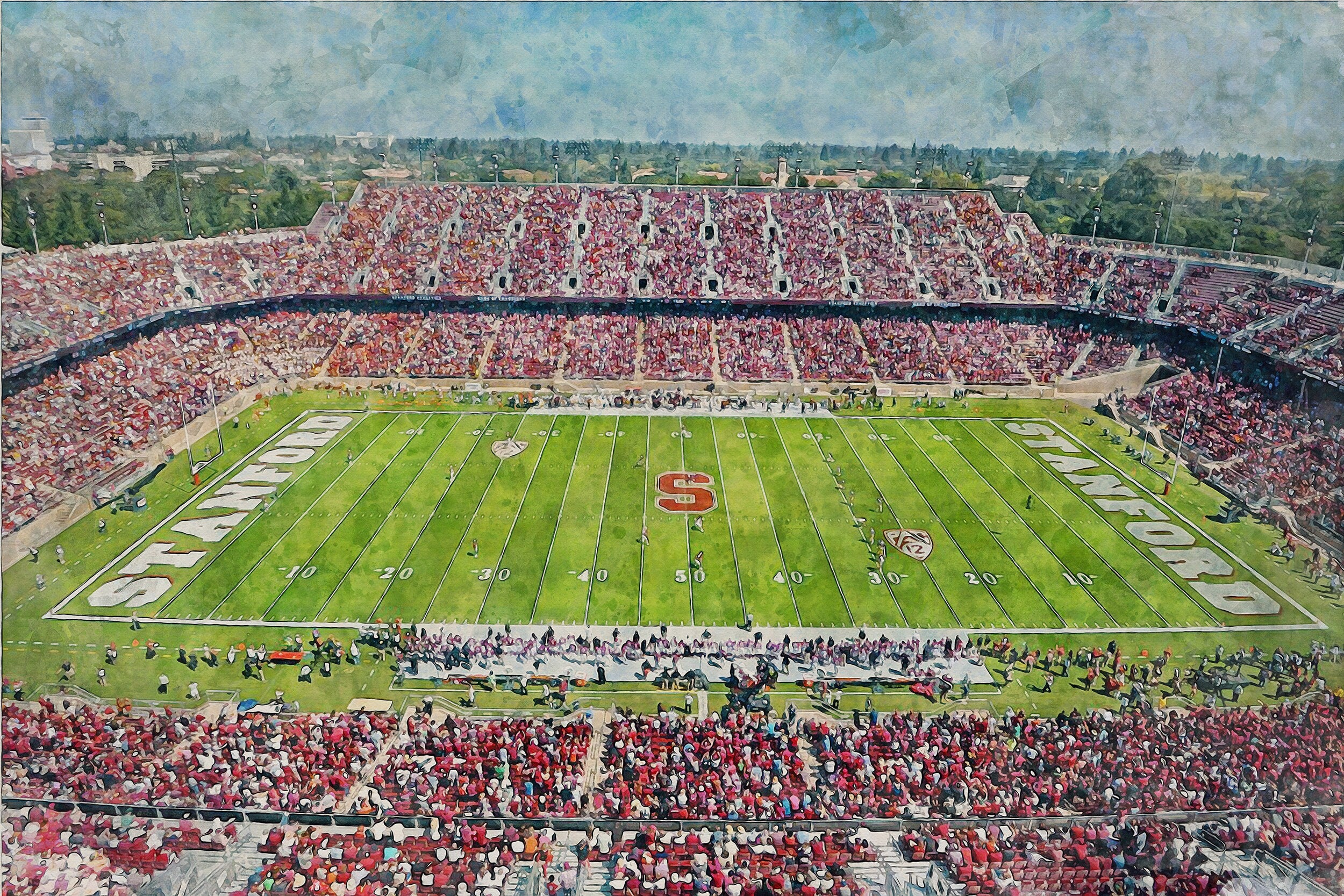 Beautiful Digital watercolor of Stanford Stadium in Stanford California