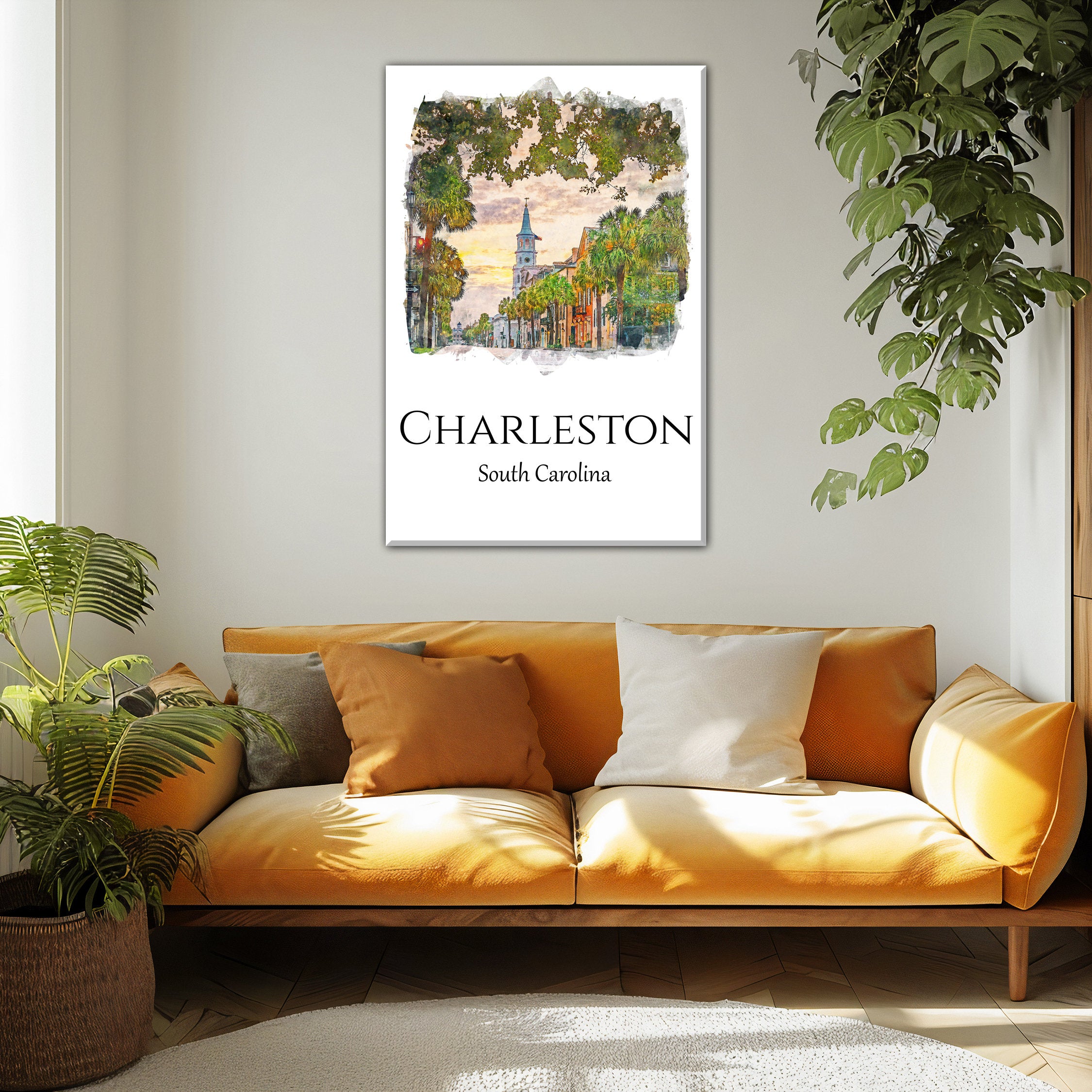 Add a touch of southern charm to your home with this beautiful Charleston, South Carolina watercolor canvas print. Elevate your decor with this stunning piece of wall art that captures the essence of this historic city.