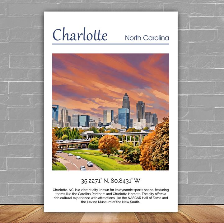 Experience the beauty of Charlotte in a whole new way with this unique canvas print. Add it to your cart today and bring a piece of the south into your home!