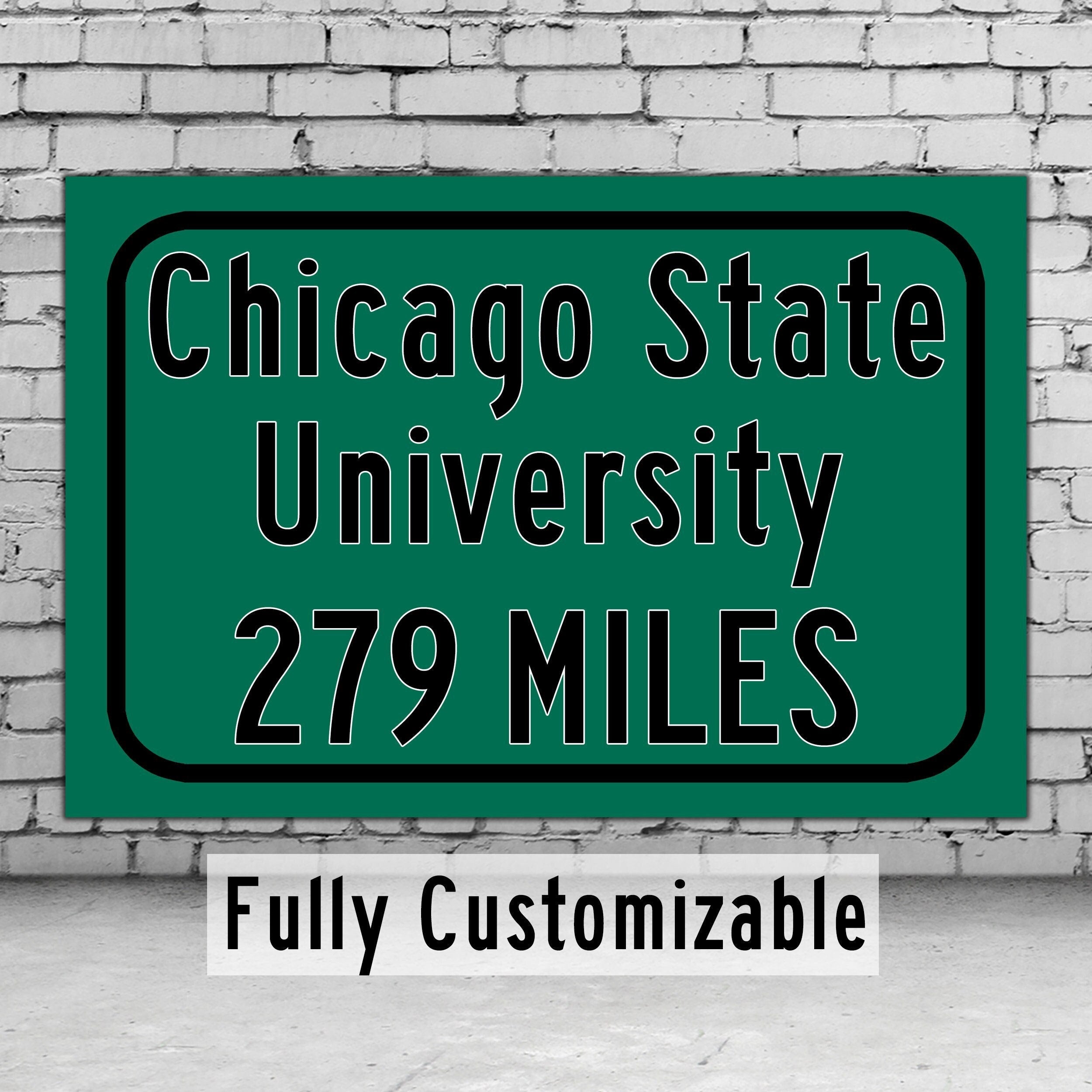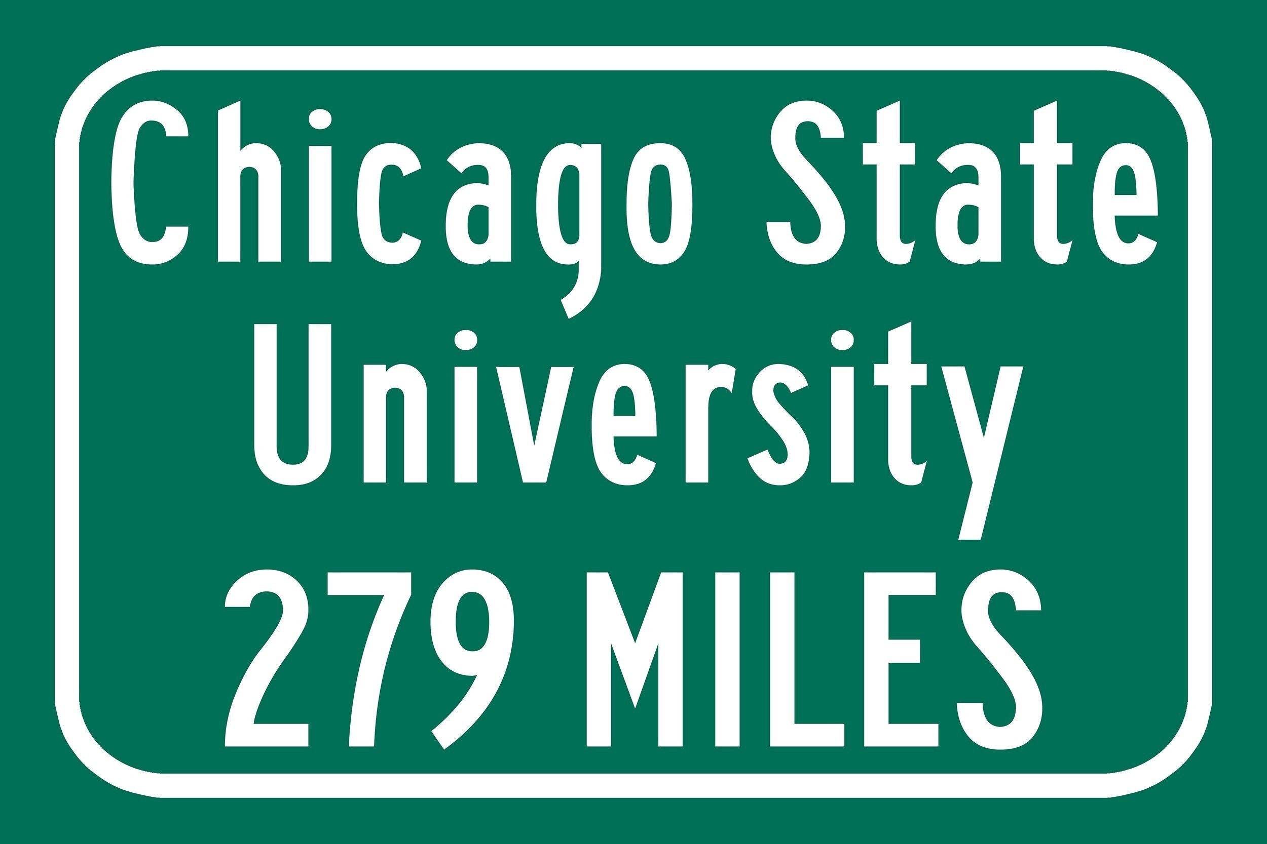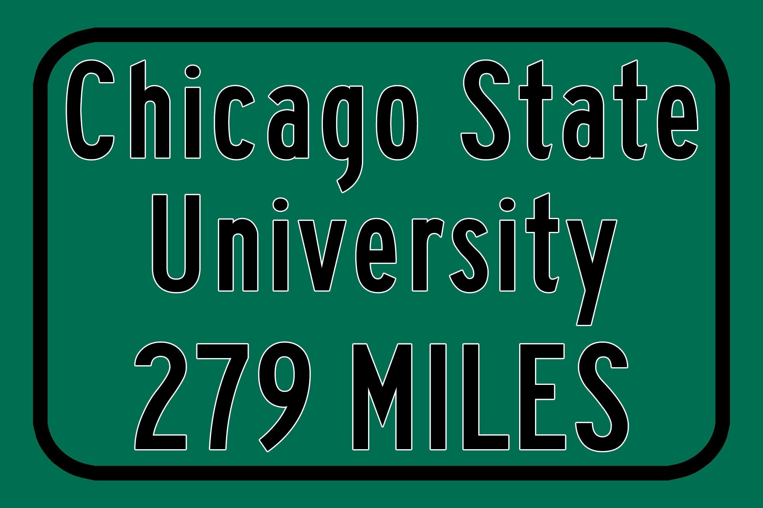 Personalized Highway Distance sign to Chicago State University / Chicago State Cougars / Chicago Illinois