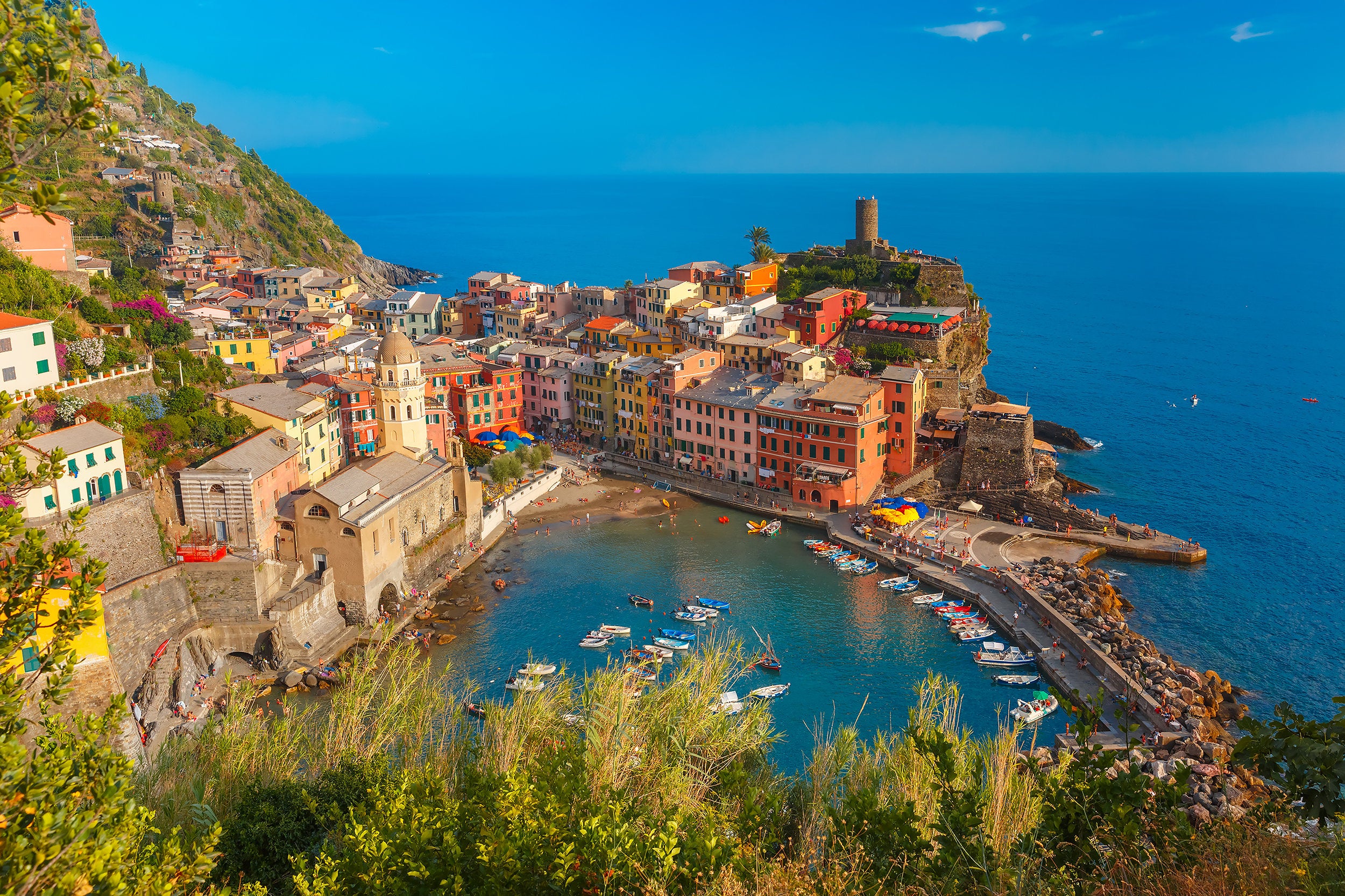 Stunning Photo of Cinque Terre in Italy Great for a piece of wall art. Great for a piece of wall art. Available as a single canvas at 16″ x 24″ , 24″ x 36″ , or 32″ x 48″ or we can make you a special 3 panel work of art as large as 4 x 8 foot wide. Cinque Terre watercolor canvas