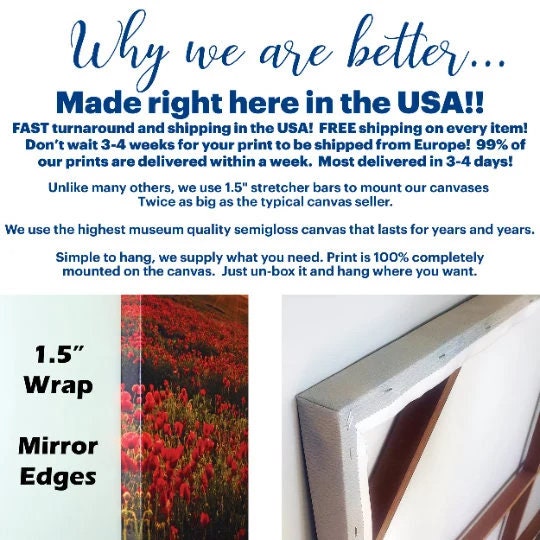 2. Unlike many others, we use 1.5″ stretcher bars to mount our canvases which are twice as big as the typical canvas seller. That 1.5″ look makes our canvases so impressive.