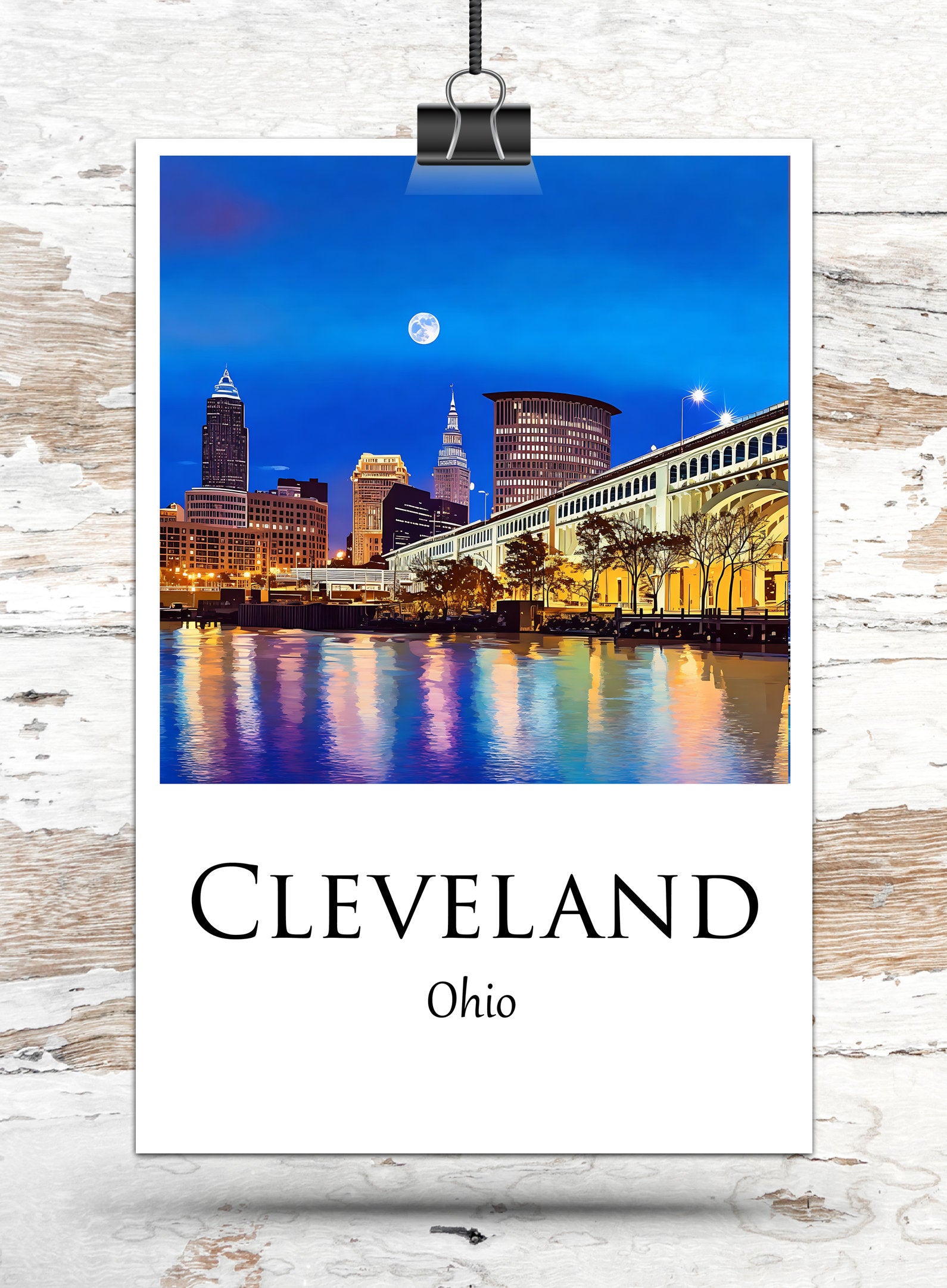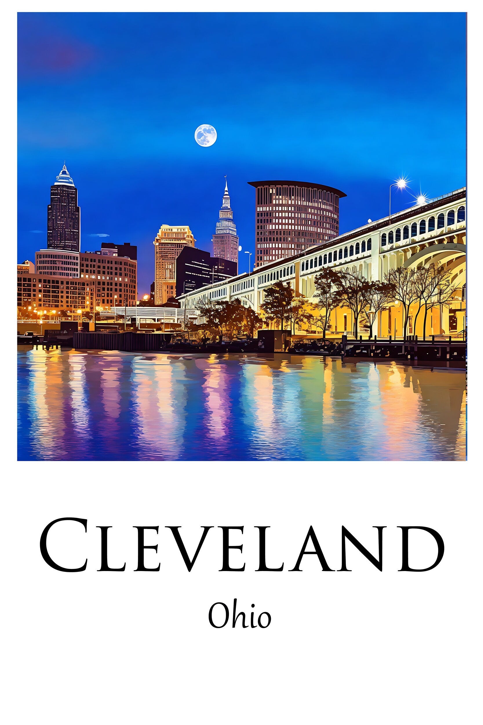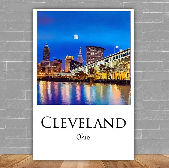 Introducing our Cleveland Ohio travel art canvas print b the perfect addition to your wall art collection and home decor! Show off your love for the city with this stunning Cleveland print that captures the essence of this vibrant and historic city.