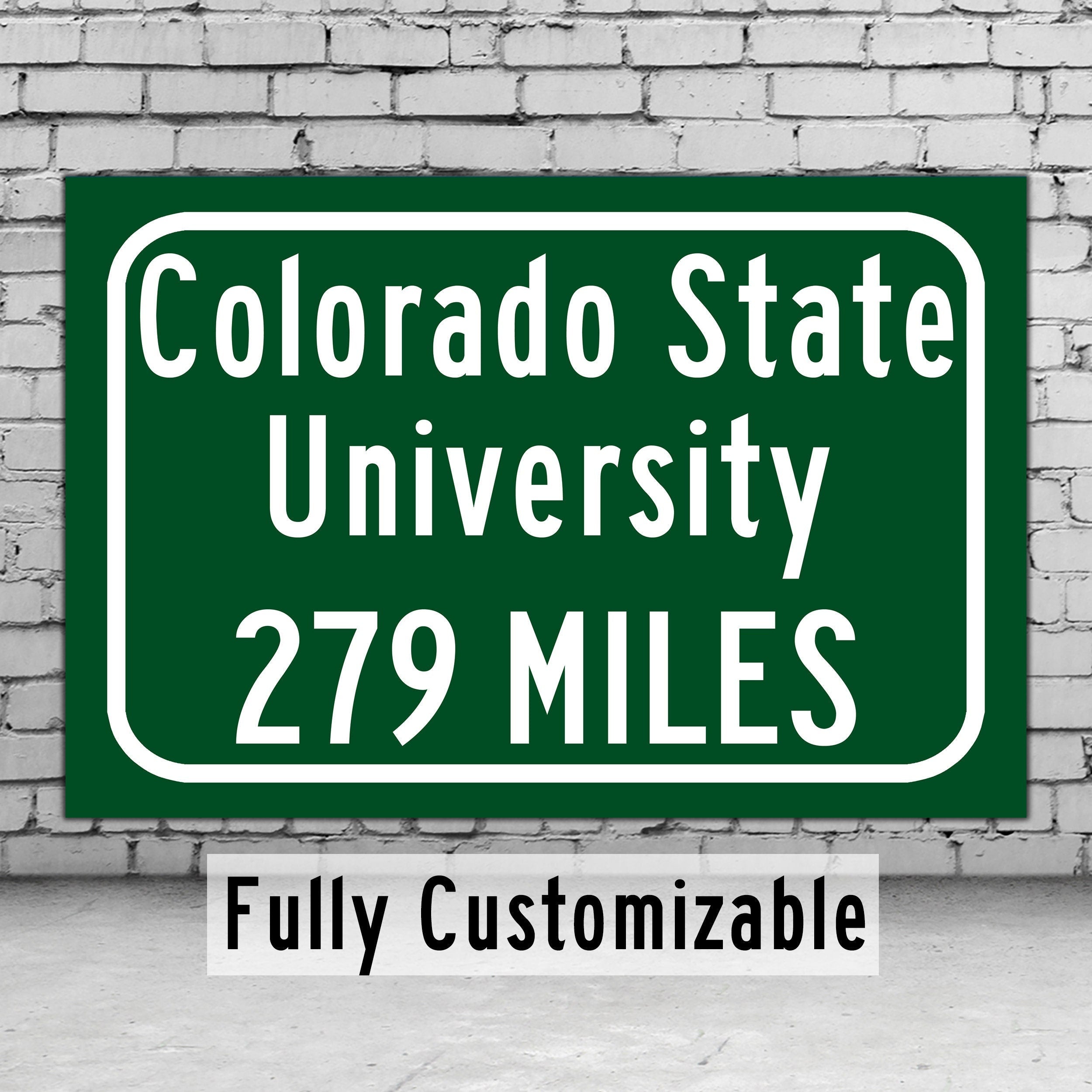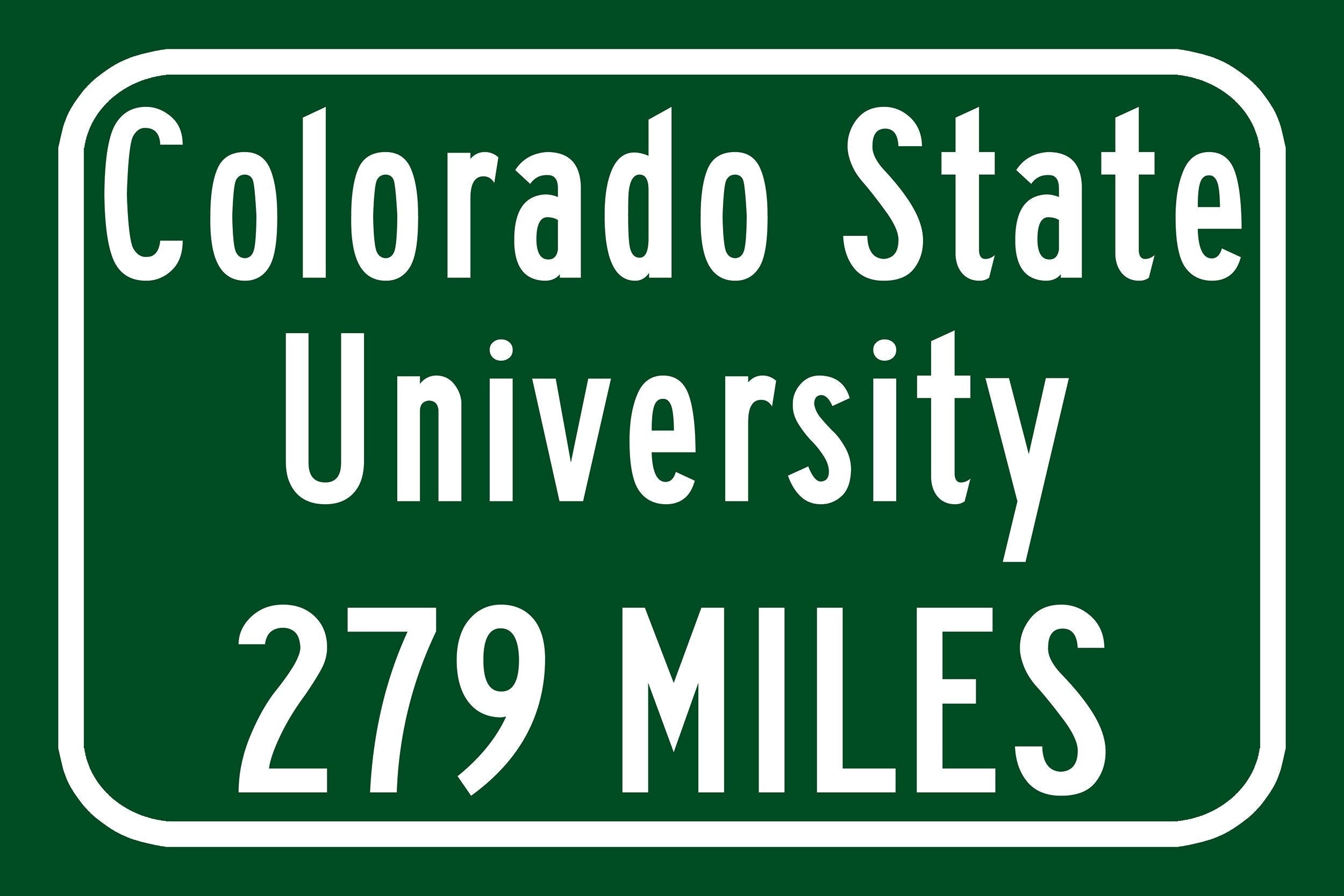 Personalized Highway Distance sign to Colorado State University / Colorado State Rams / Fort Collins Colorado /