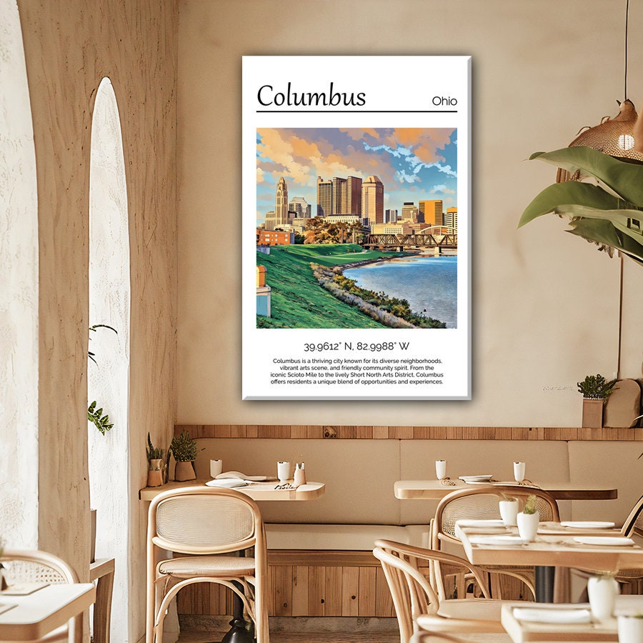 Transform your living space with this exquisite piece of artwork. Order now and elevate your decor with our Columbus Ohio travel art canvas print.