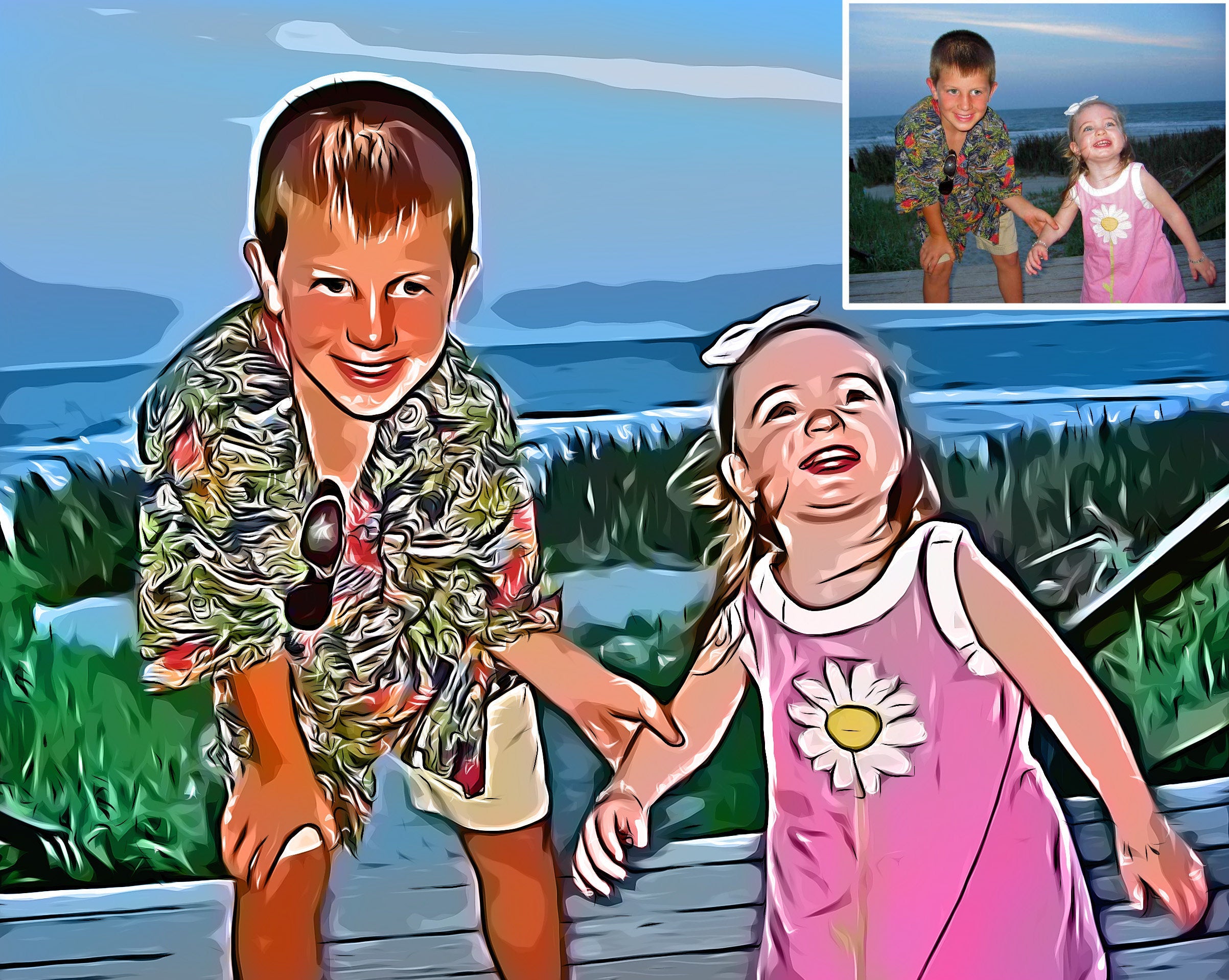 Capture your beautiful and fun moments with handmade digital artwork. We take your image and digitally create a lovely piece of art.