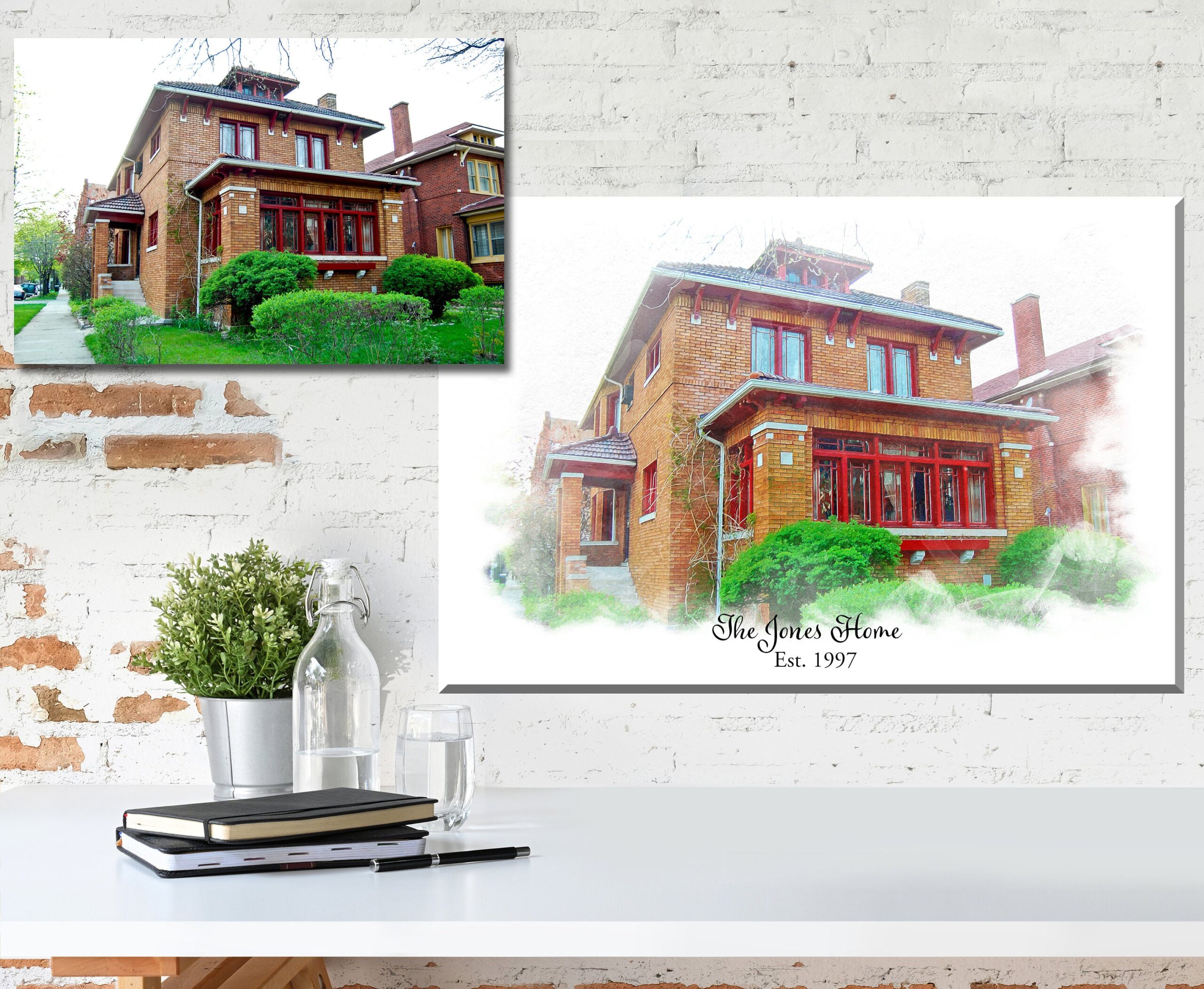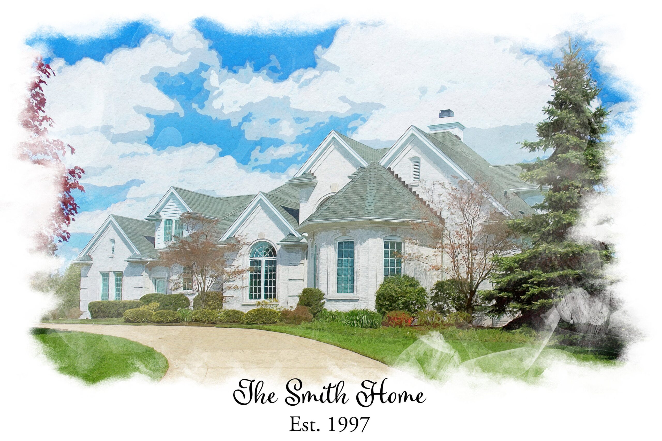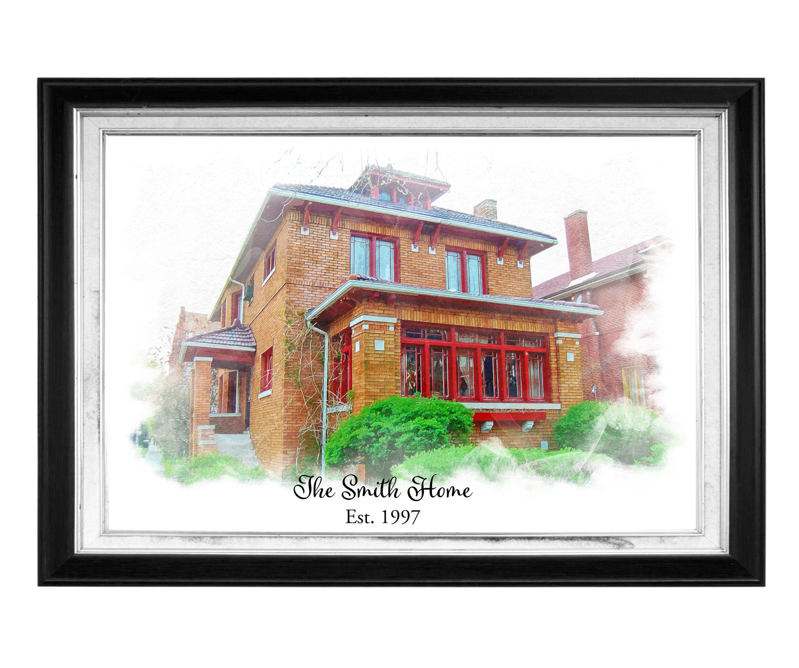 Our custom home canvas is a digitally created, custom watercolor house portrait. Printed and customized with your own text. The perfect gift for a new home buyer, parent’s house or friend’s home, realtor gifts and more…
