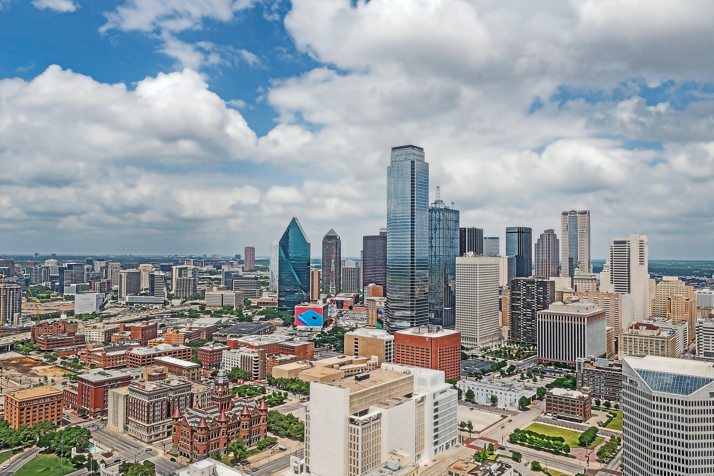 The skyline of Dallas as a digital oil painting. Dallas Texas skyline. Great colors and plenty of lights. Great for a piece of wall art. Available as a single canvas at 16″ x 24″ , 24″ x 36″ , or 32″ x 48″ Dallas art.