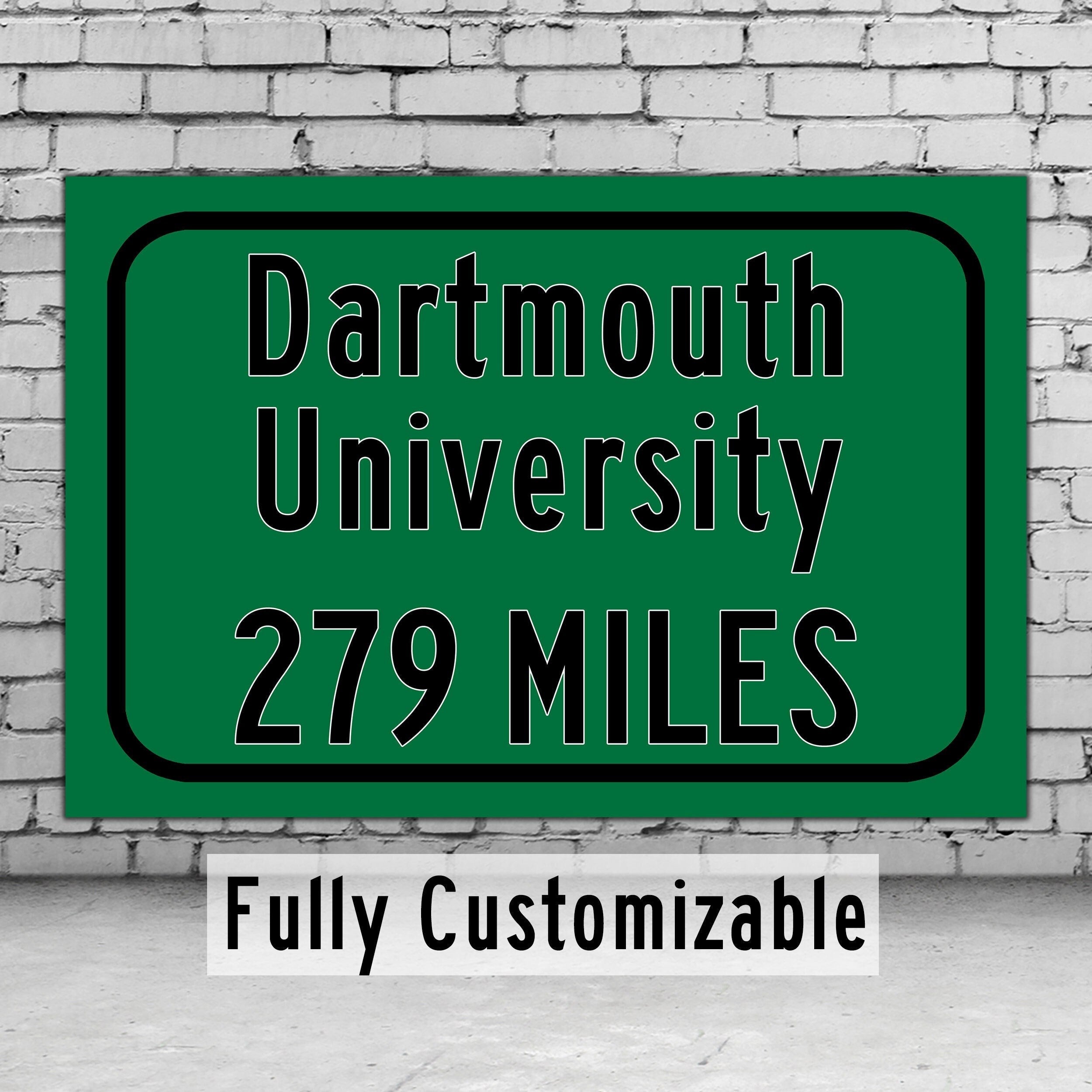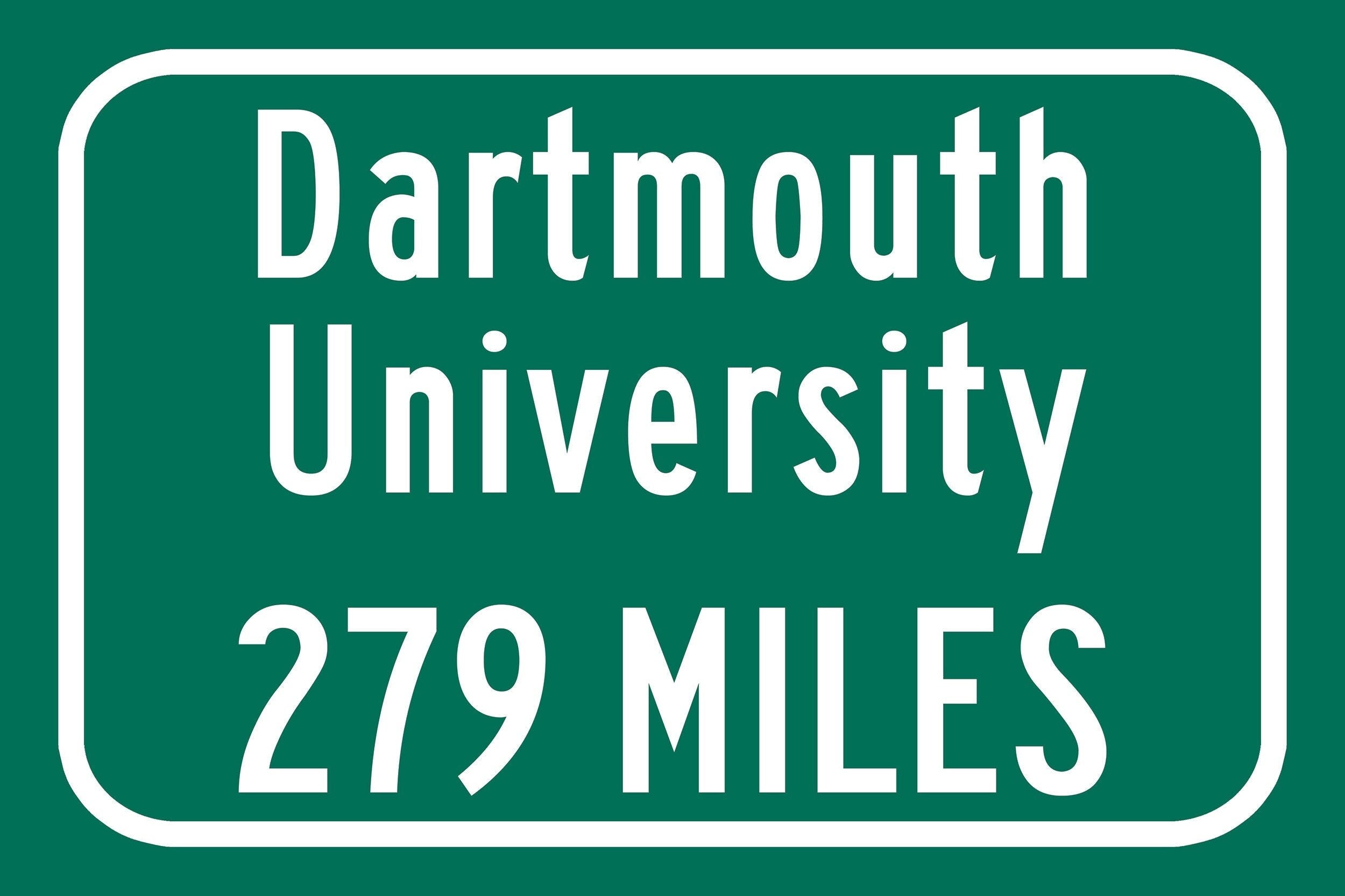 Personalized Highway Distance sign to Dartmouth College / Dartmouth Big Greeen / Hanover New Hampshire /