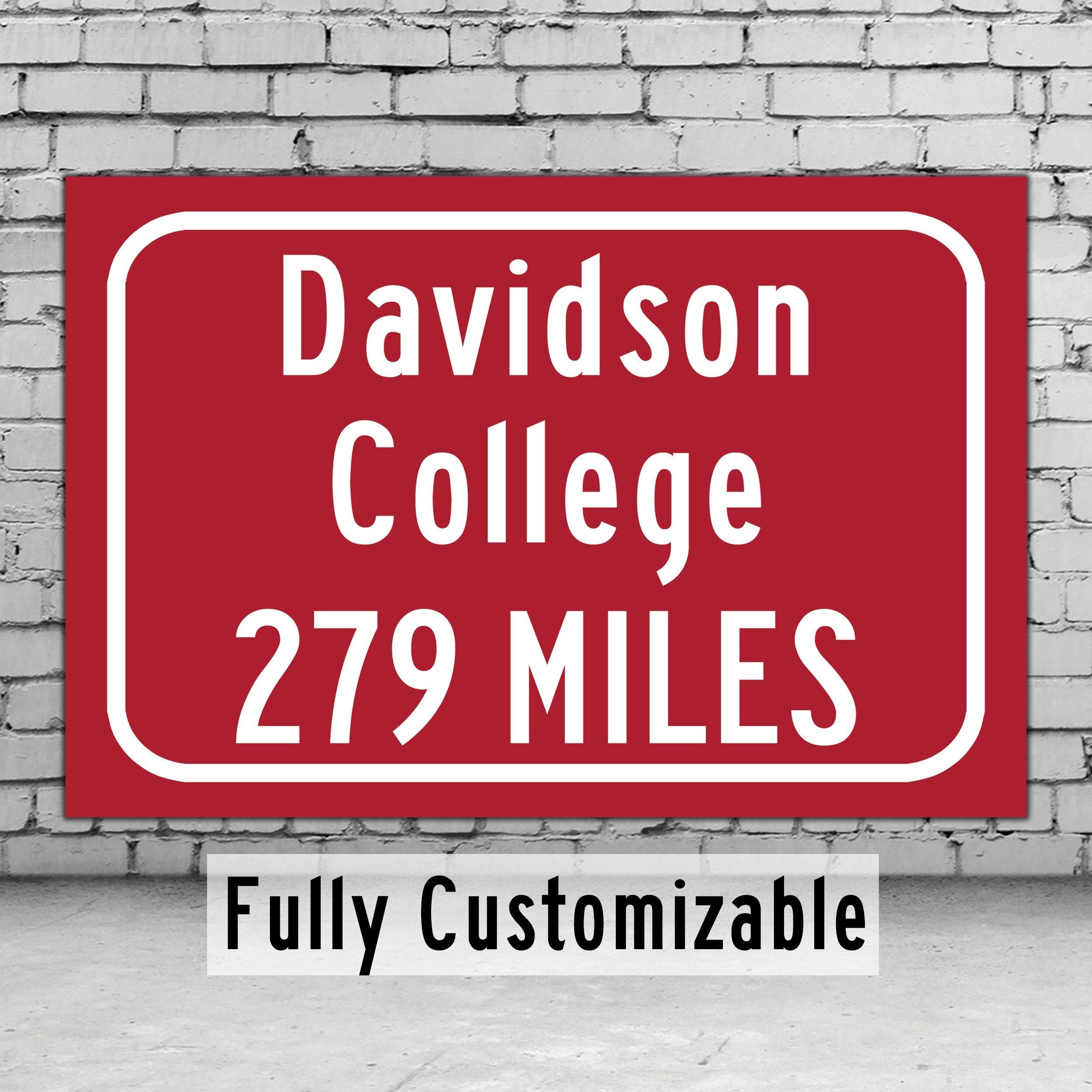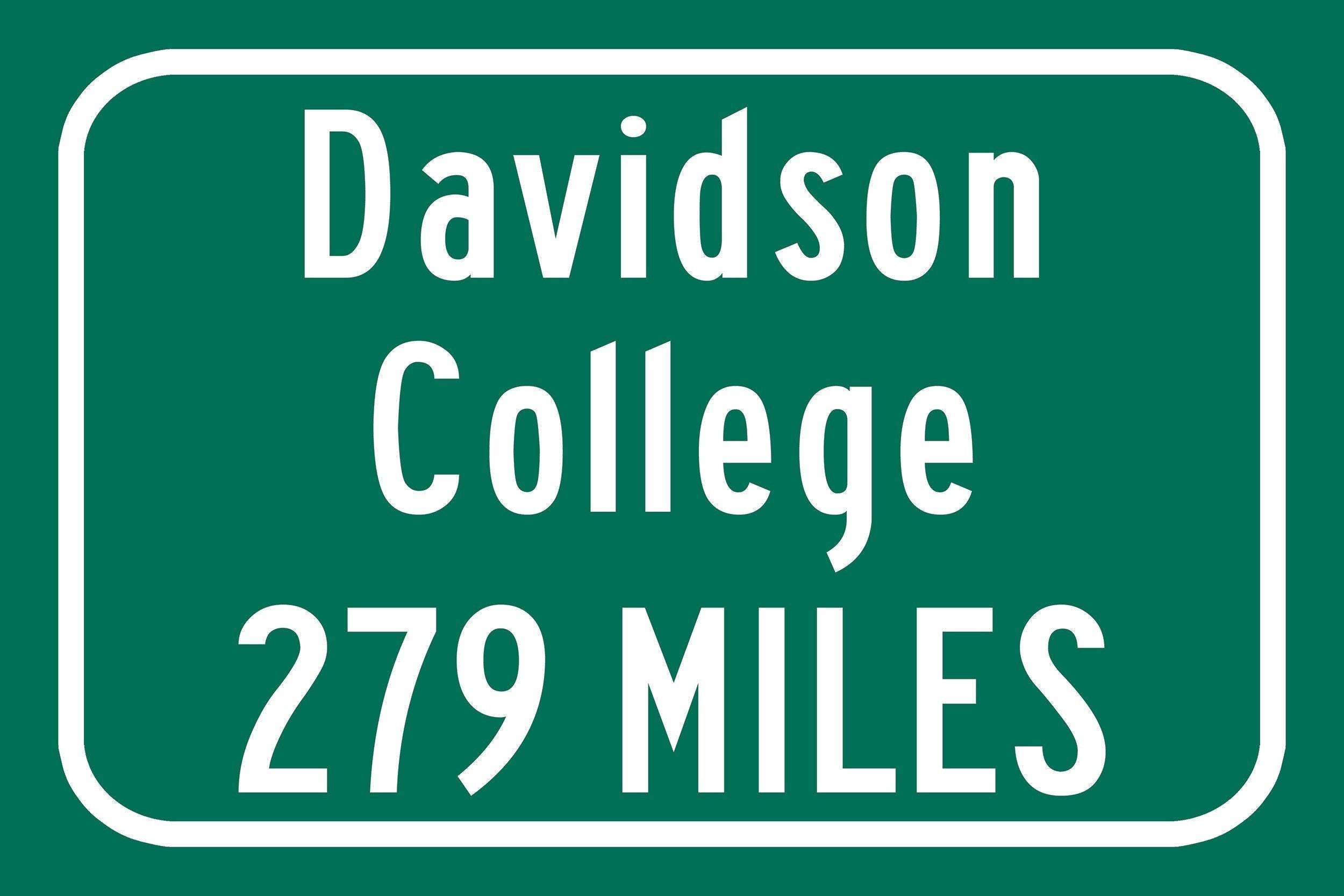 Personalized Highway Distance sign to Davidson College. Davidson College . Davidson Wildcats sign.