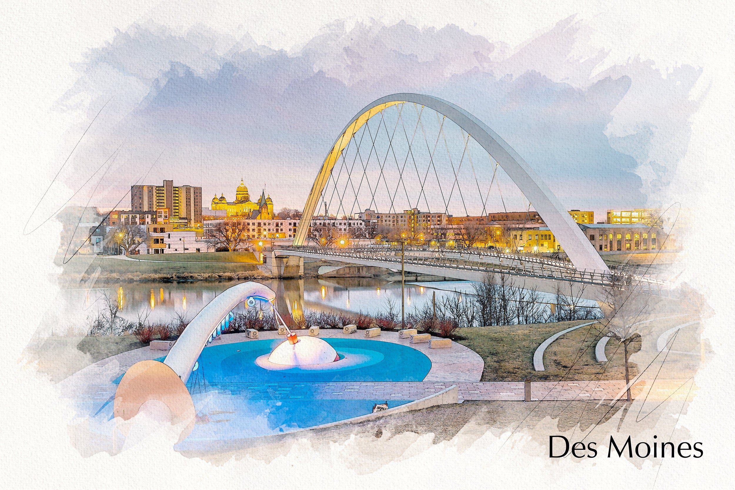 Des Moines watercolor canvas, Des Moines watercolor Canvas, Des Moines Canvas art, Des Moines print Des Moines wall art, Des Moines Iowa