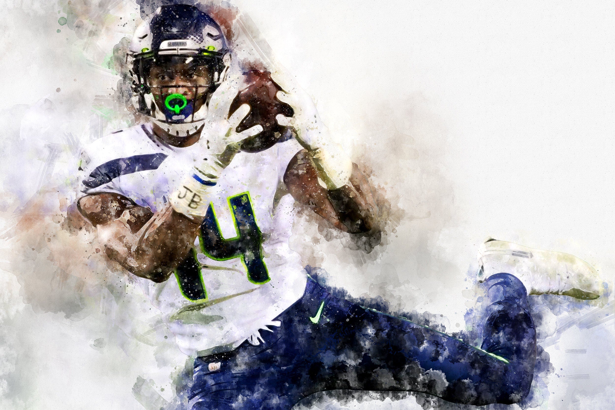 Beautiful watercolor of DK Metcalf playing for the Seattle Seahawks