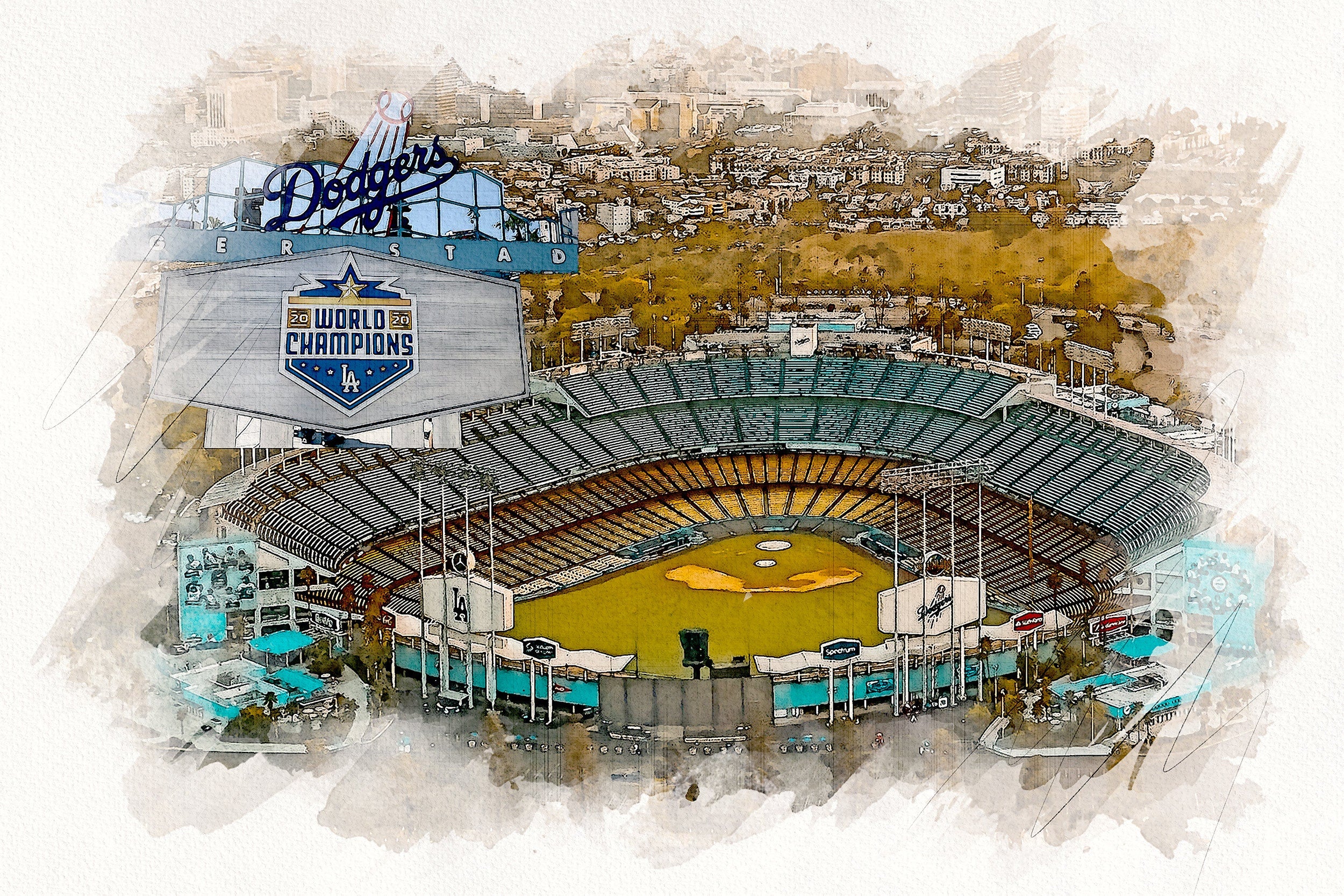 Dodger Stadium Artwork, Dodger Stadium watercolor sketch, Los Angeles Dodgers, Los Angeles Dodgers Collage,, Pro