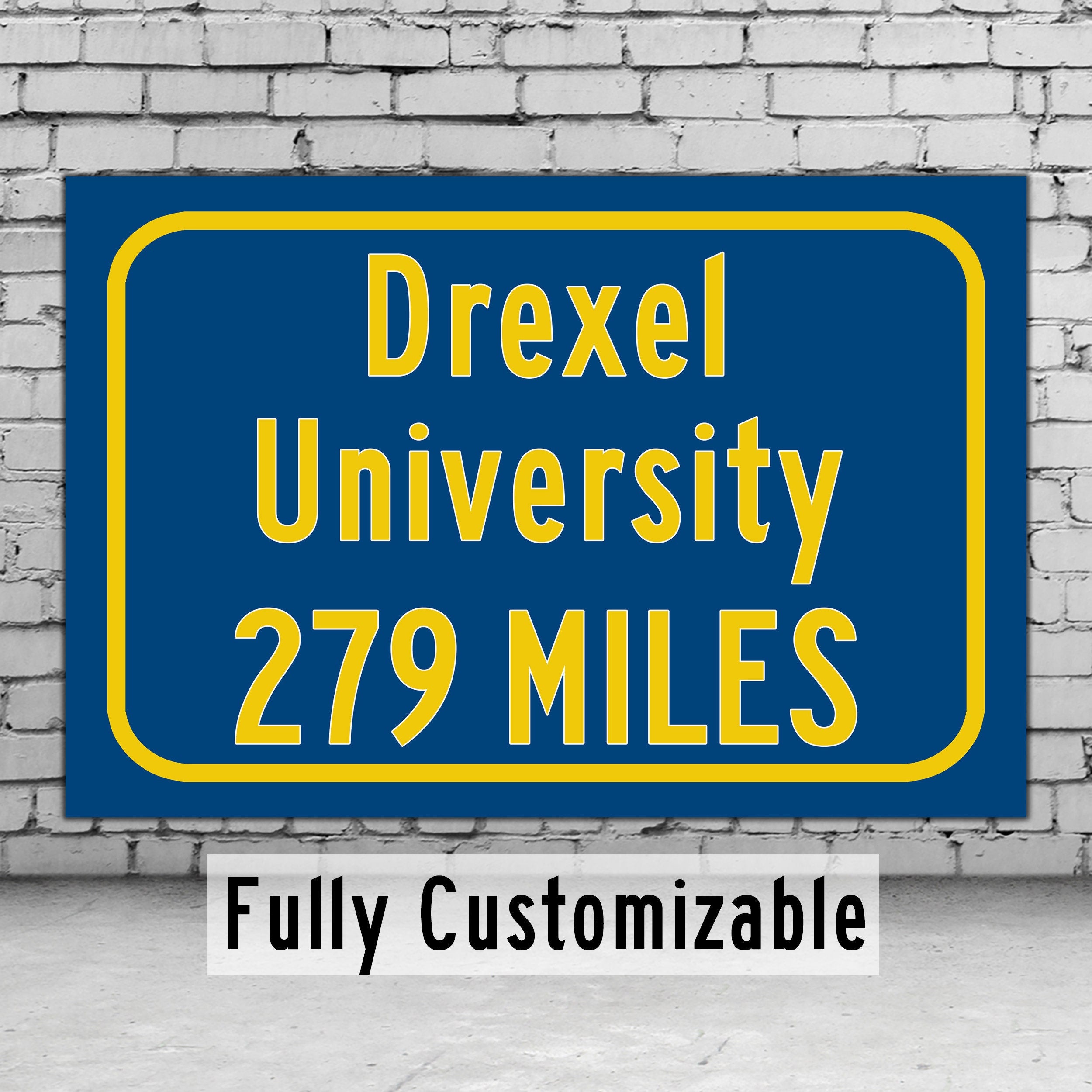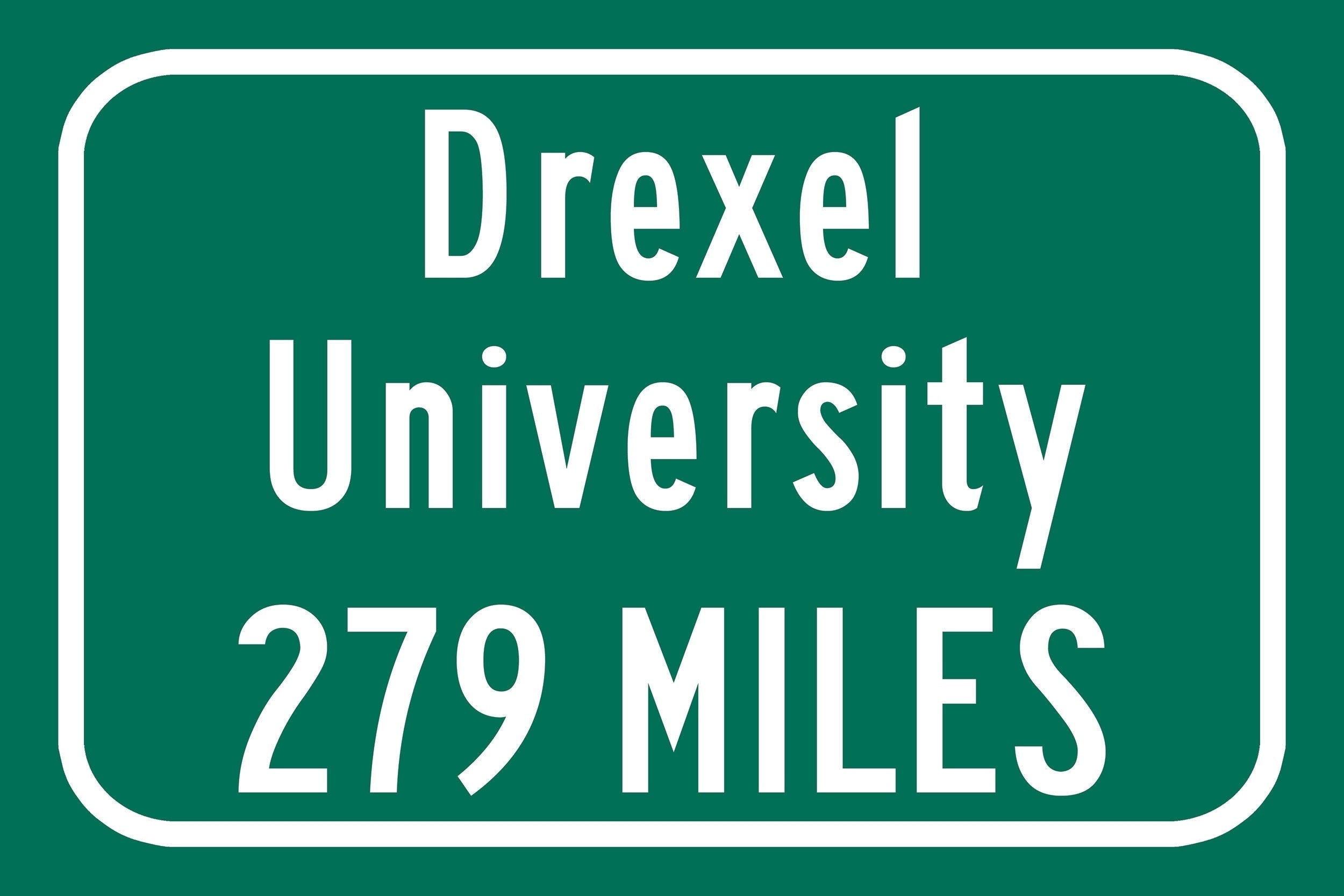 Personalized Highway Distance sign to Drexel University / Drexel Dragons / Philadelphia, Pennsylvania /